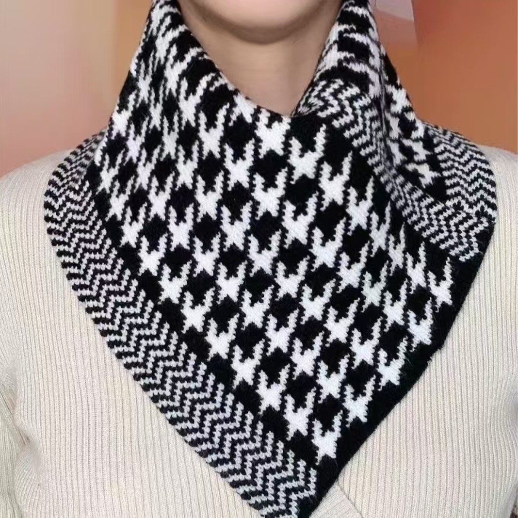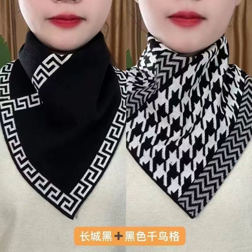 千鸟格围脖护颈套头保暖三角巾围巾秋冬防风防寒印花高级感三角巾