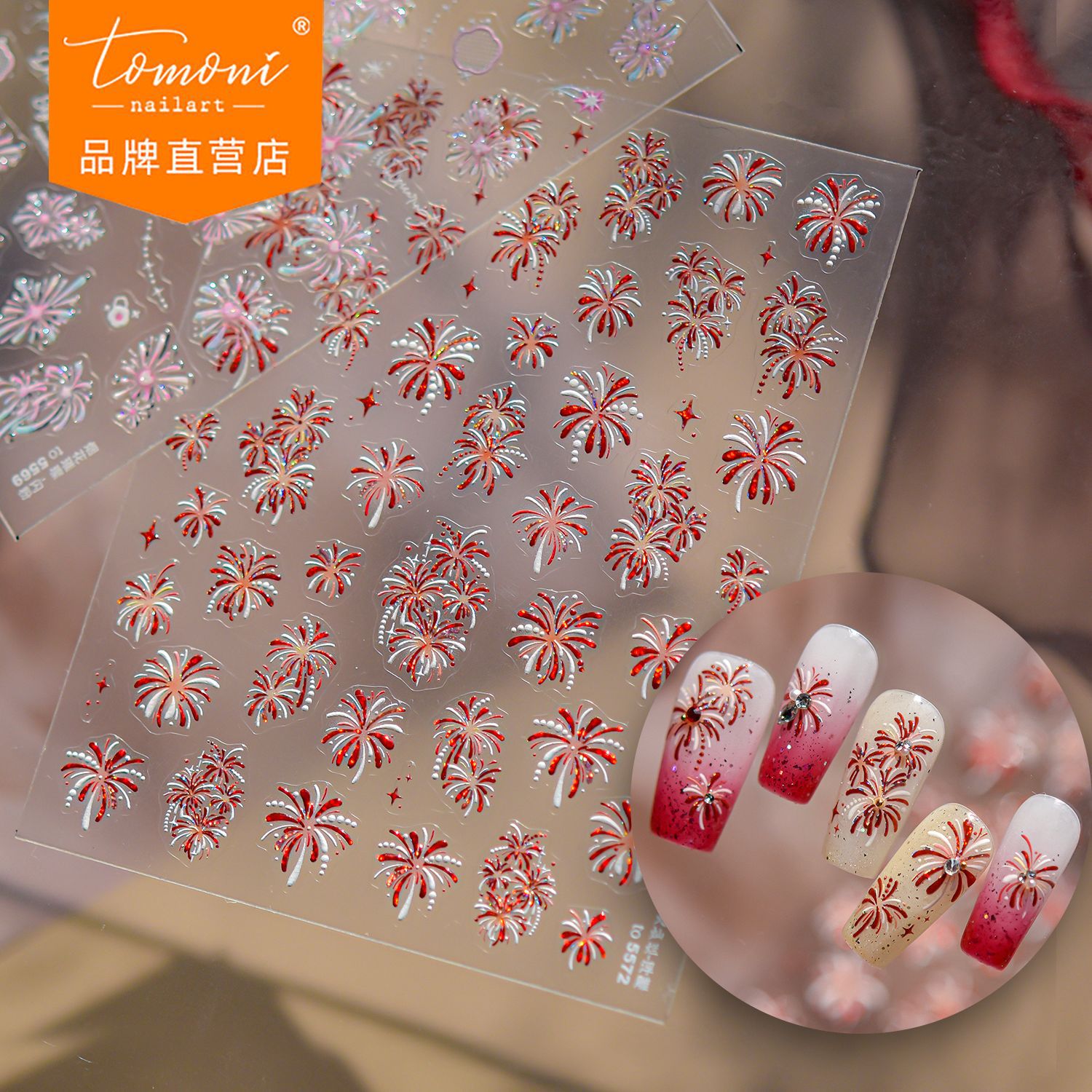 tomoni闪粉美甲贴纸 爆款新中式指甲贴新年烟火灿烂美甲贴纸混款