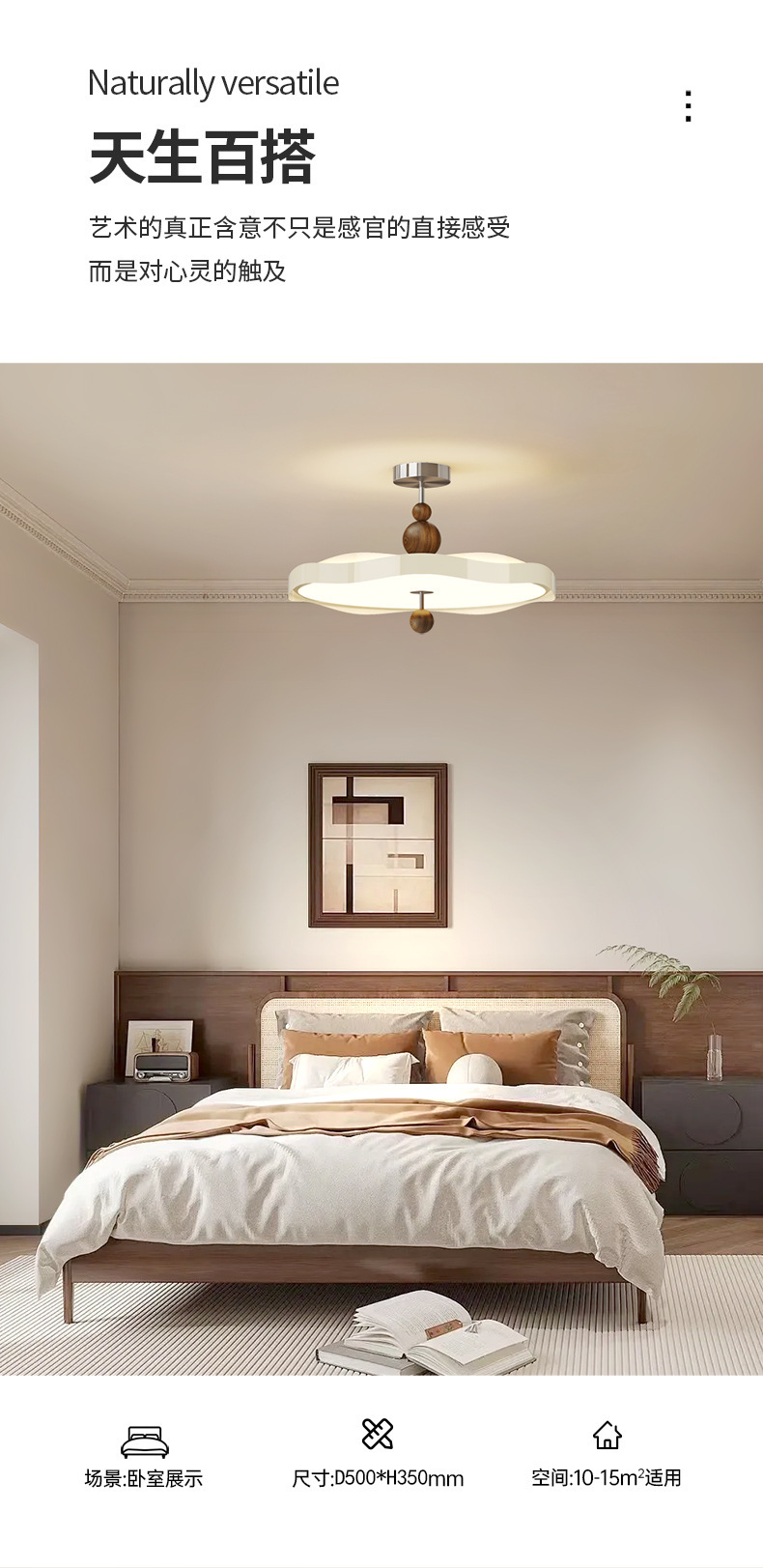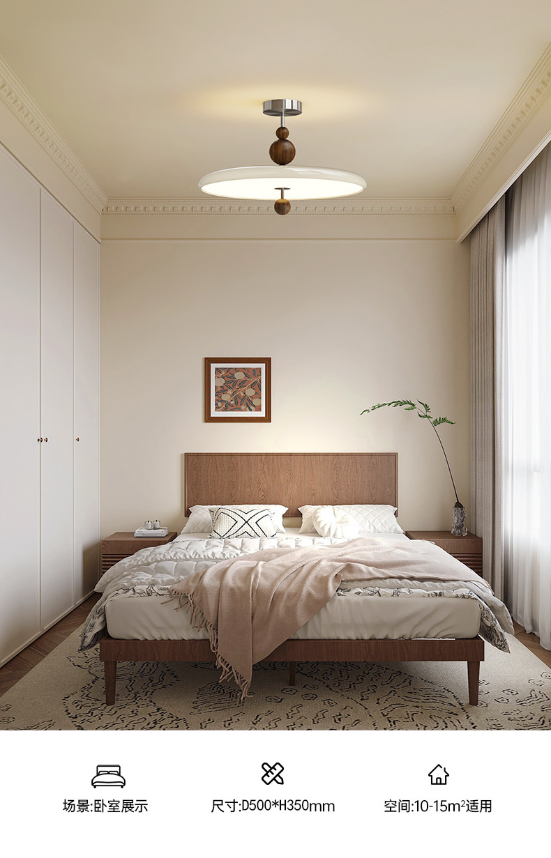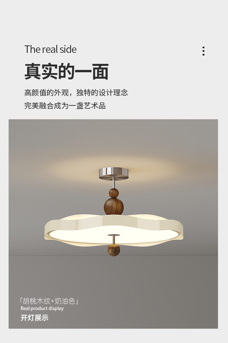 中古寂風寝室シャンデリア目保護フライパンライトフレンチクリーム風胡桃木目部屋主臥天井灯