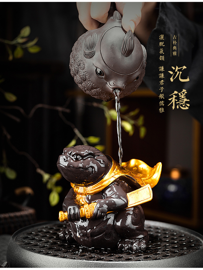 紫砂の茶の寵愛の置物は刀を抜いて助けます。紫砂の茶の寵愛の茶器の茶を養うことができます。