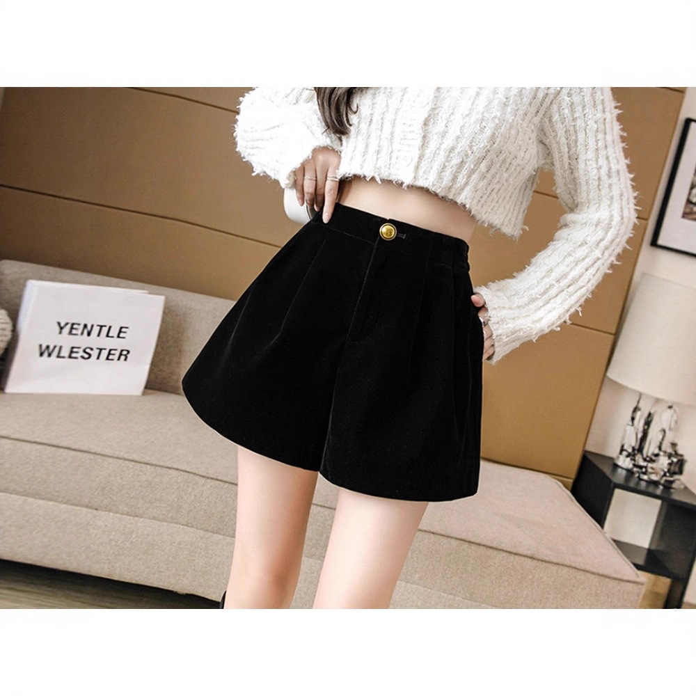 金丝绒短裤秋冬季加绒2025新款短裤外穿靴裤腰显瘦a字休闲阔腿裤