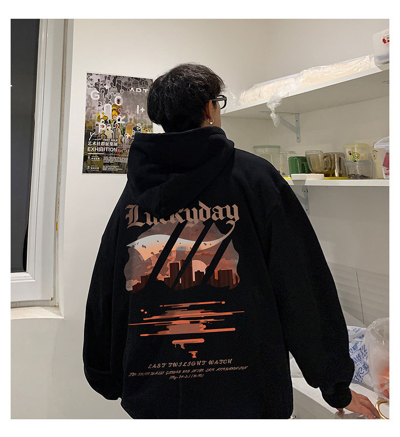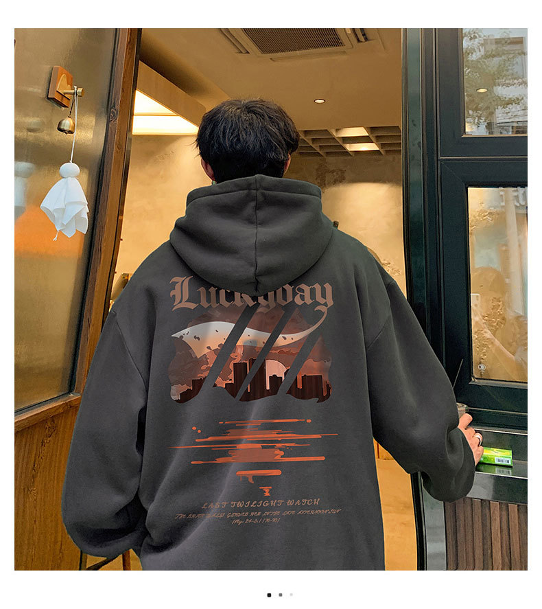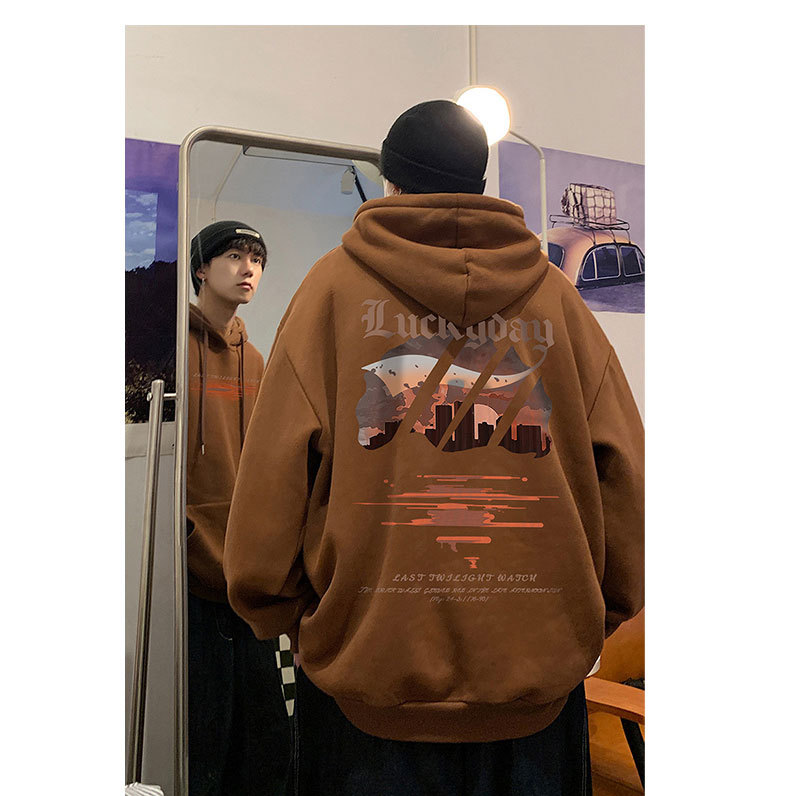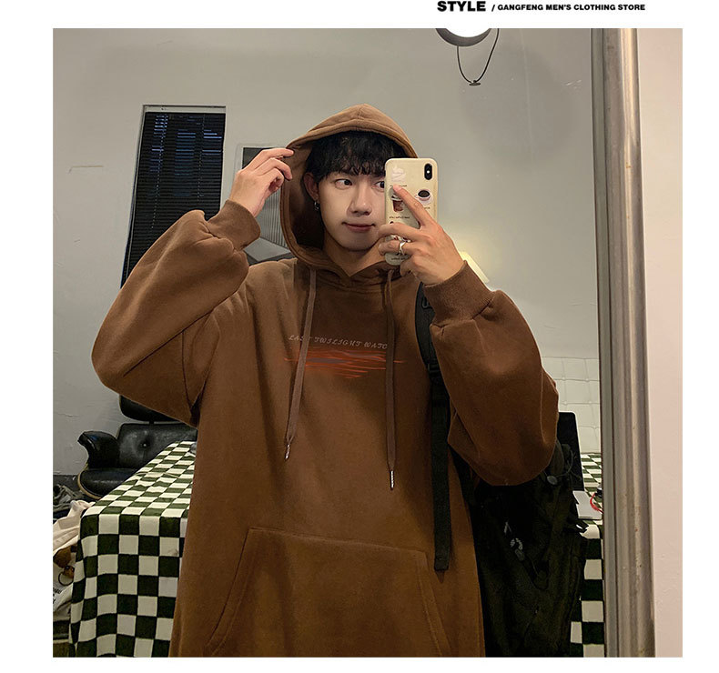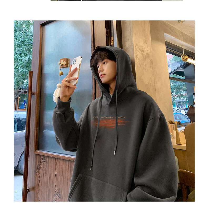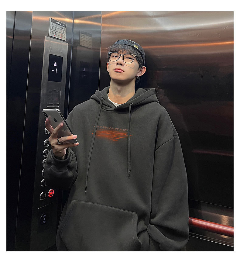フード付きの男性春秋冬のアメリカのレトロなファッションブランドの重いポンドとベルベットの厚いカジュアルな男性の服