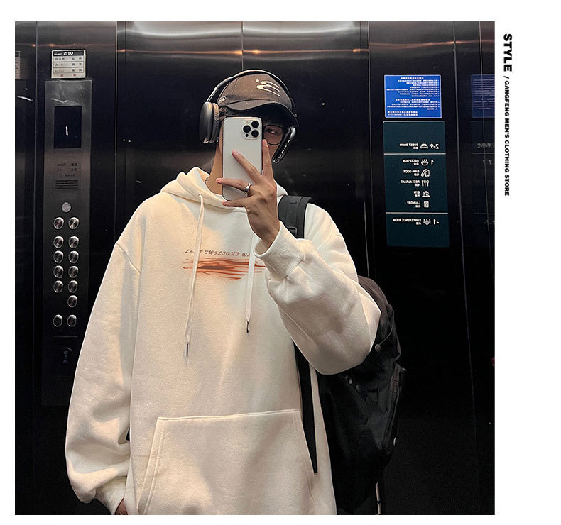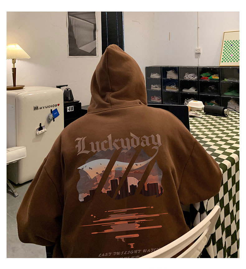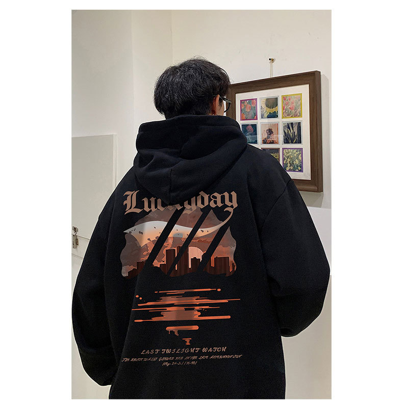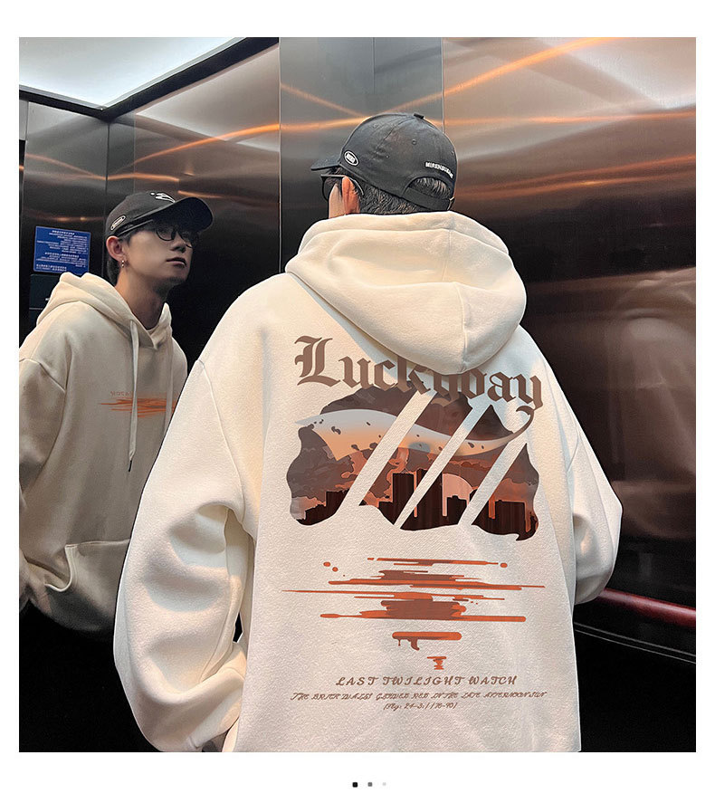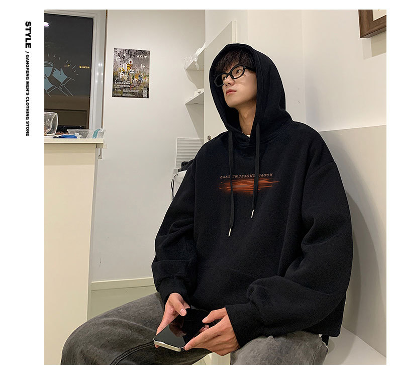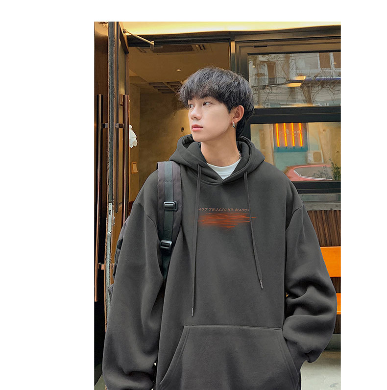 フード付きの男性春秋冬のアメリカのレトロなファッションブランドの重いポンドとベルベットの厚いカジュアルな男性の服