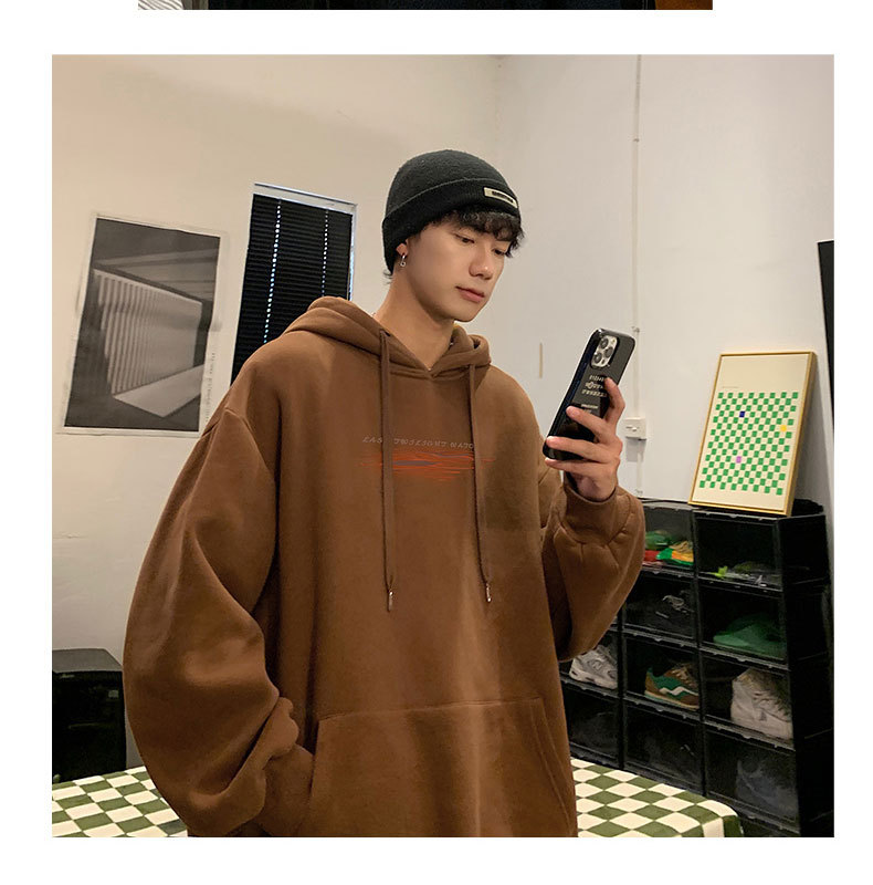 香港風カップルの男性フード付き秋のベルベット2023新ファッション純色カジュアルコートinsファッションフード