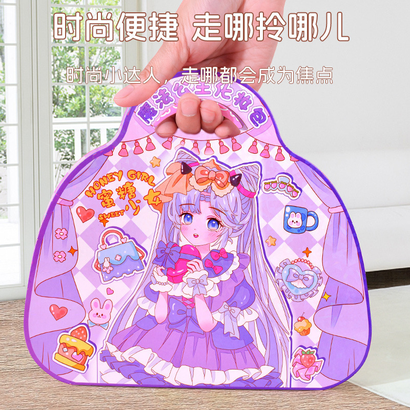 バービー王女静かな化粧バッグ着せ替えシール玩具セット女の子diy玩具4 in 1軽量