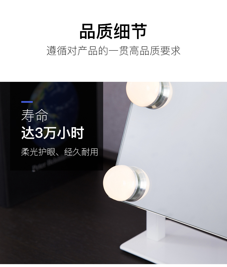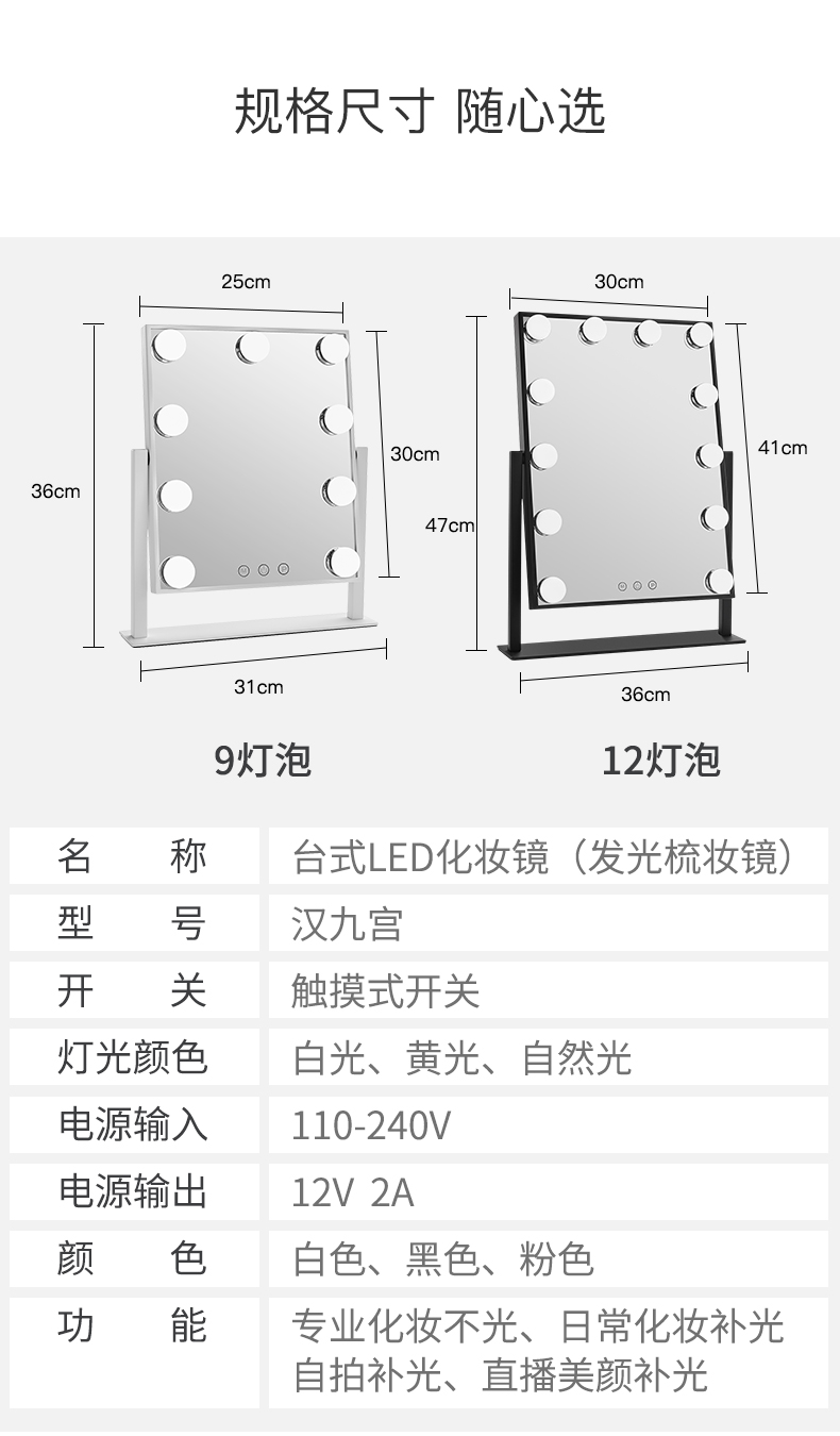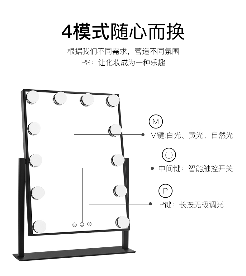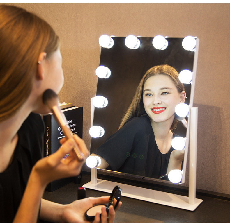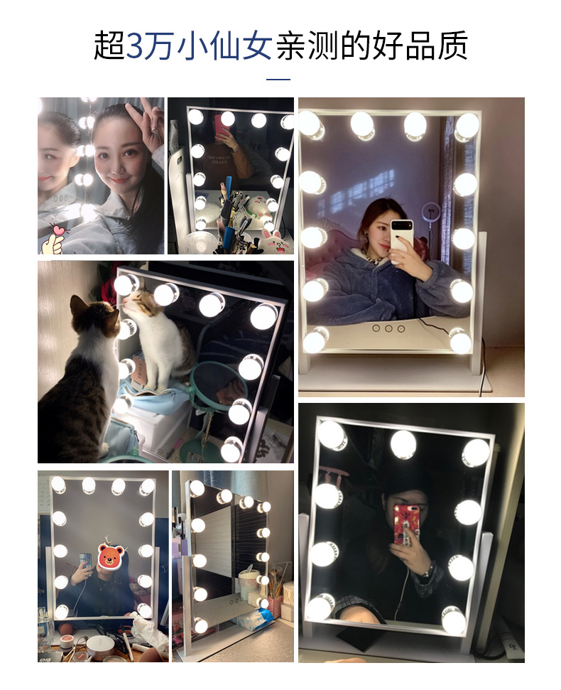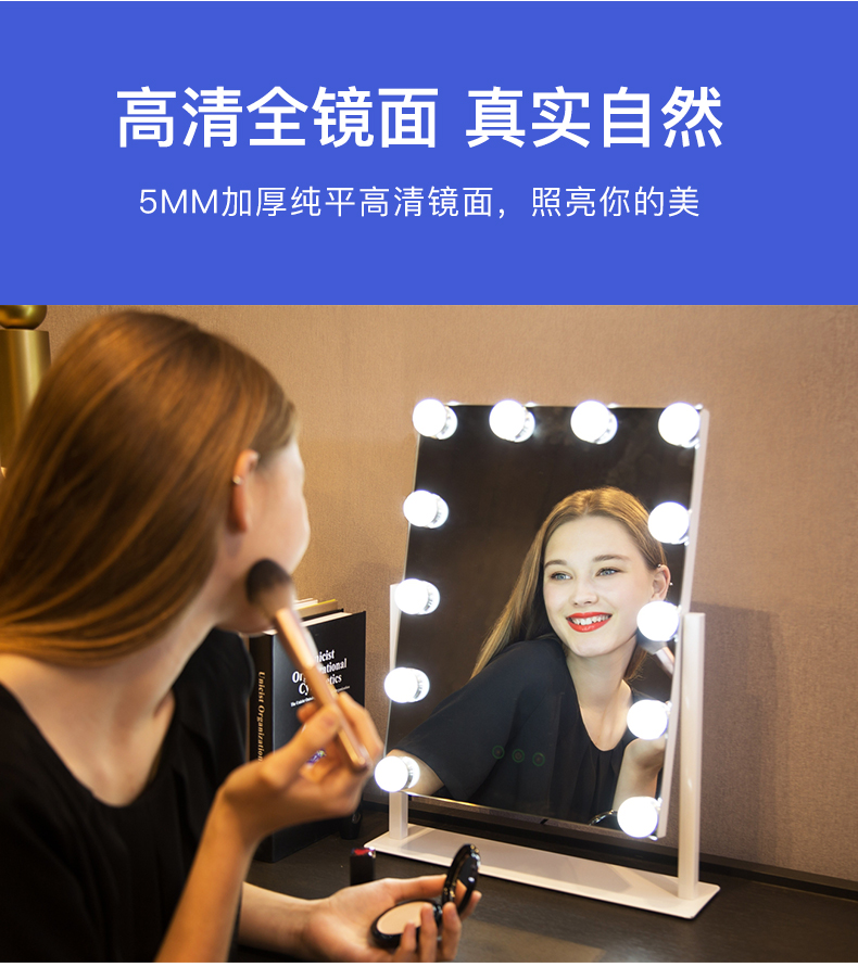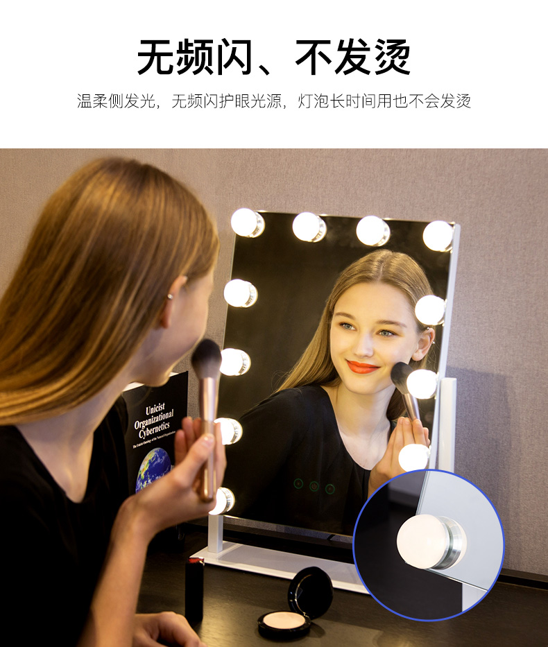 智能LED化妆镜大号台式好莱坞梳妆镜带灯泡美妆镜壁挂补光化妆镜