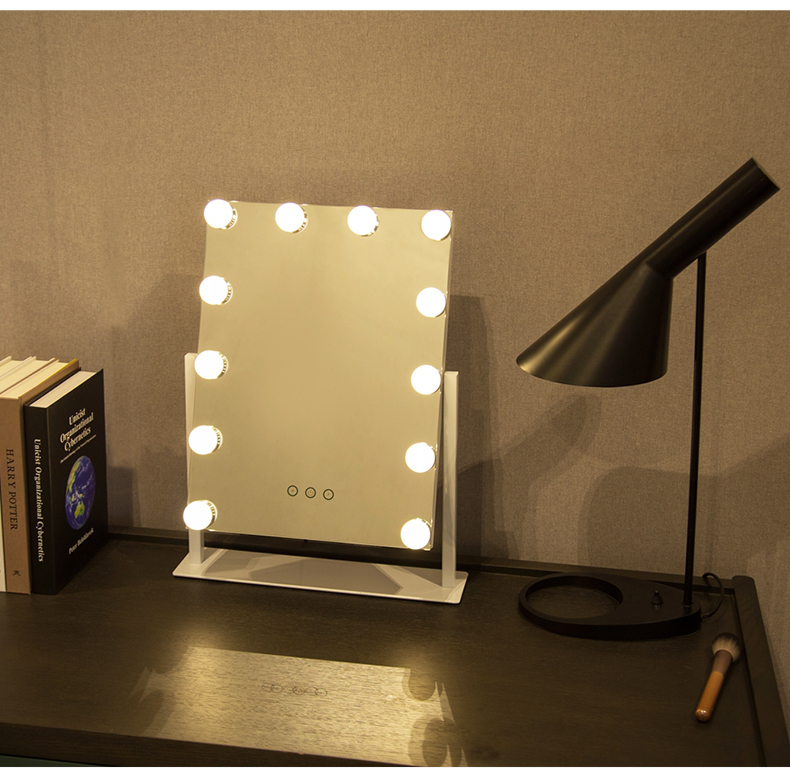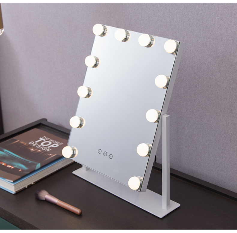 インターネット有名人のライト付きバニティミラーデスクトップ LED 電球スクエアバニティミラーホーム寮美容補助光ミラー