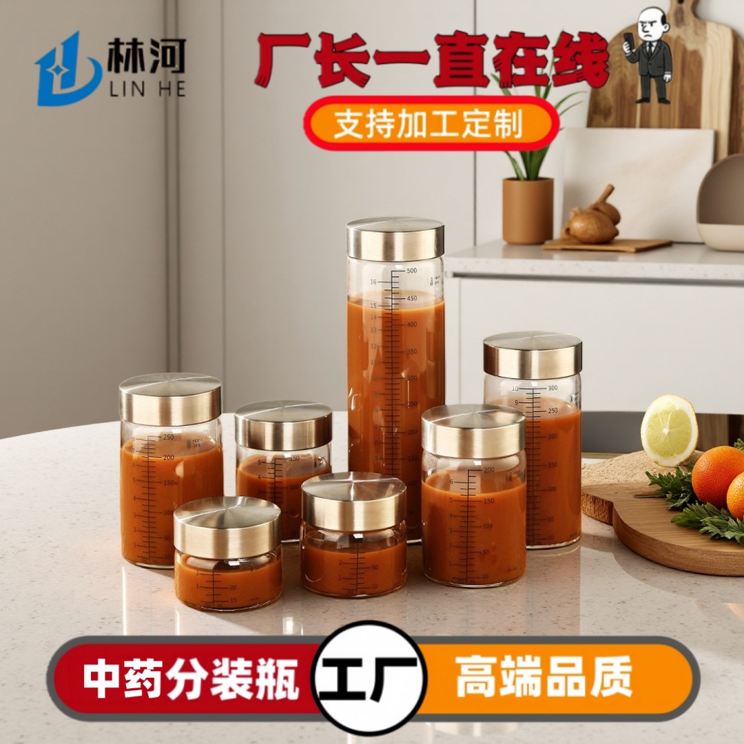 密封罐食品级耐高温高硼硅玻璃罐带刻度收纳分装中药瓶玻璃储物罐