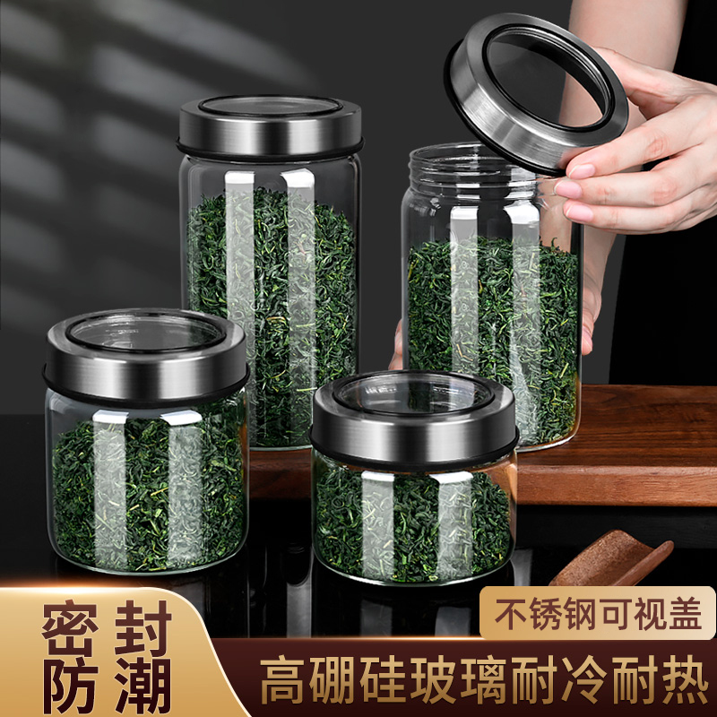 高ホウ素シリコン耐熱ガラス密封缶可視透明蓋食品収納保存瓶間食収納缶茶葉缶
