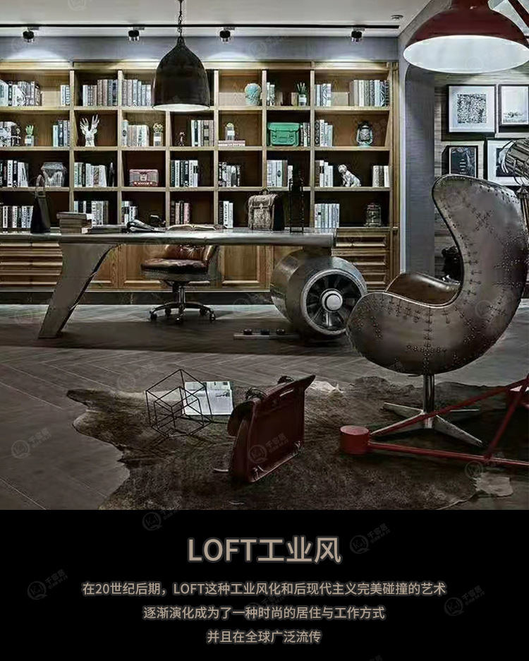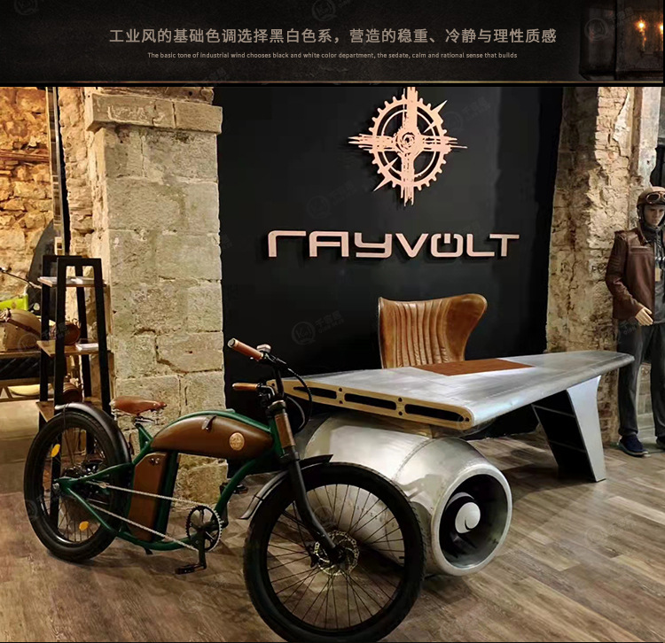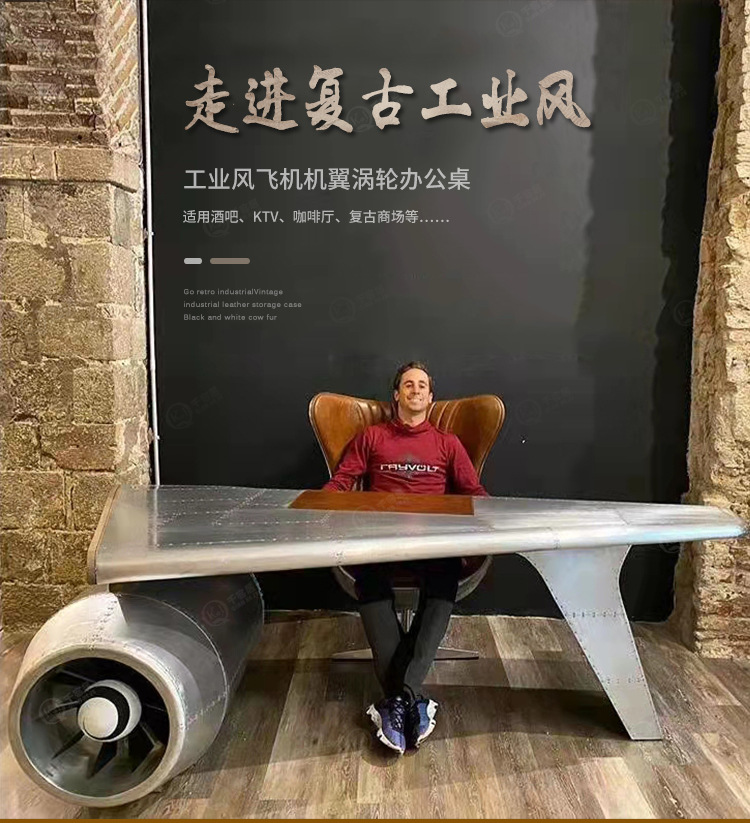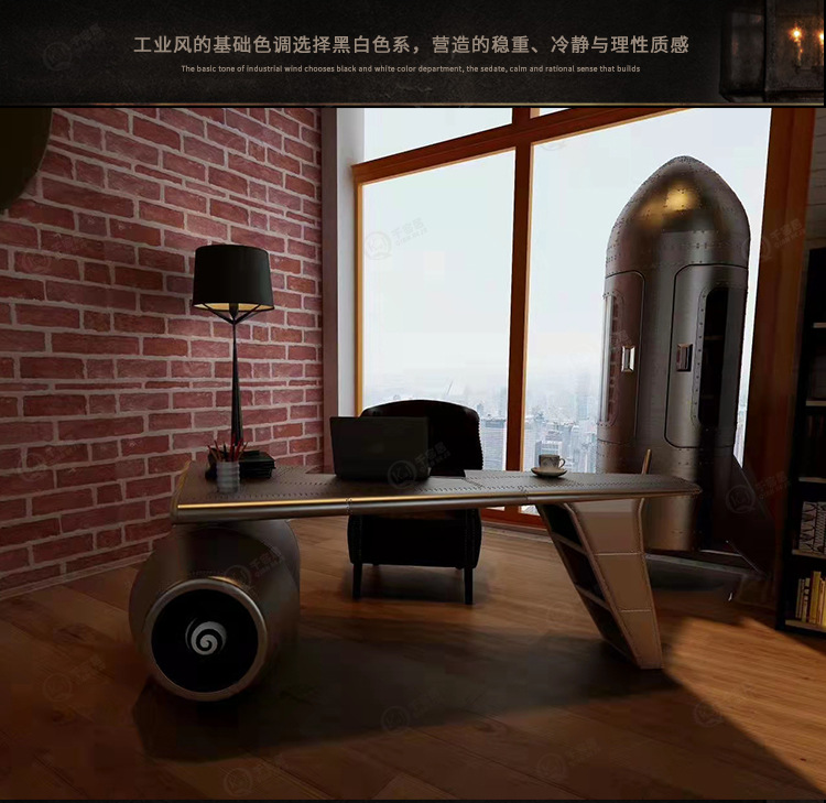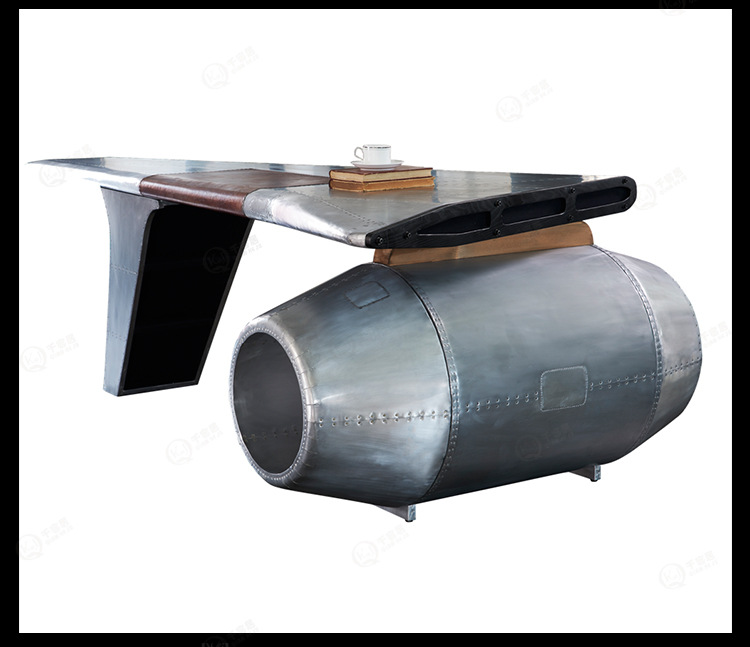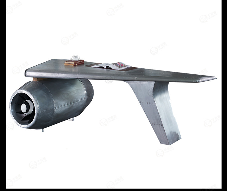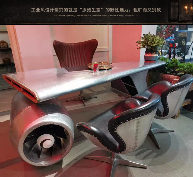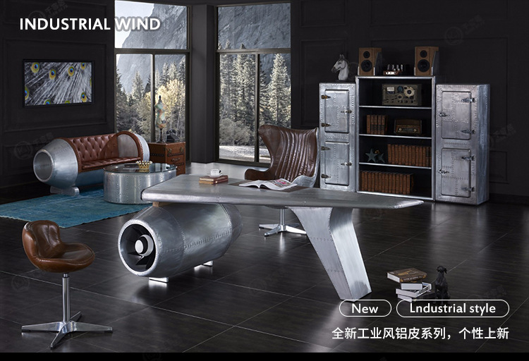 工業風ボステーブル創意航空飛行機台アルミ片オフィスデスクデザイナーレトロパソコン本と椅子の組み合わせ