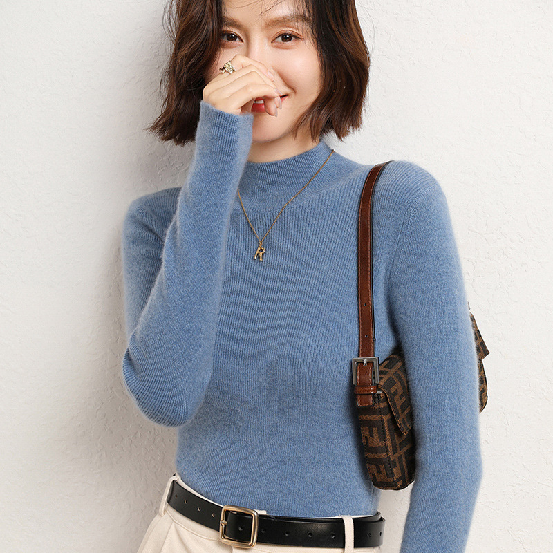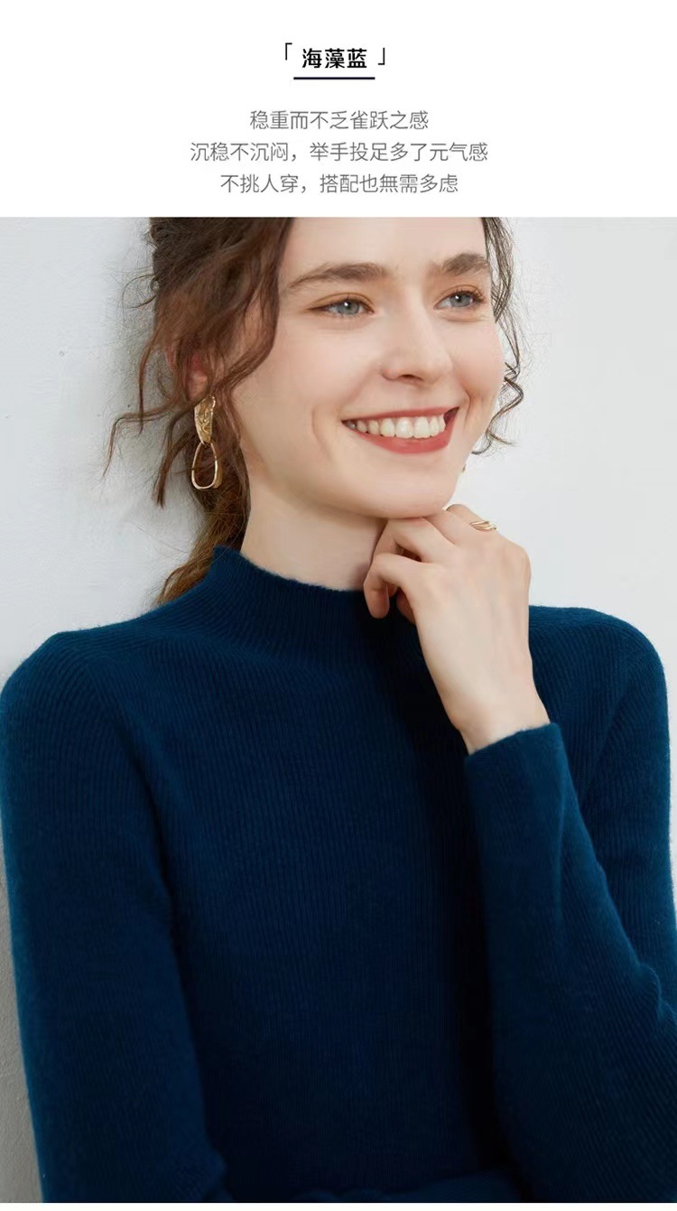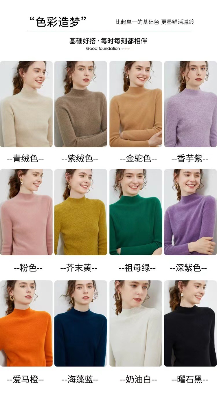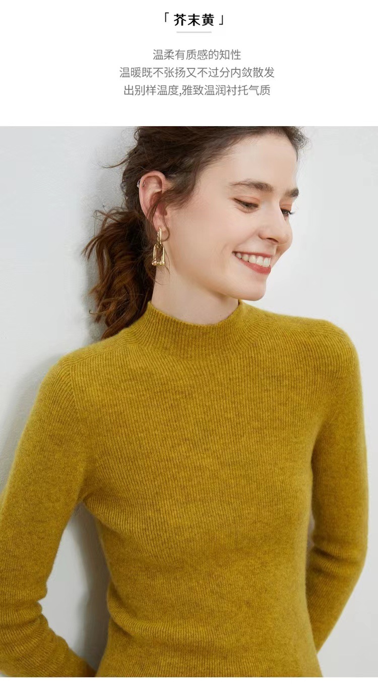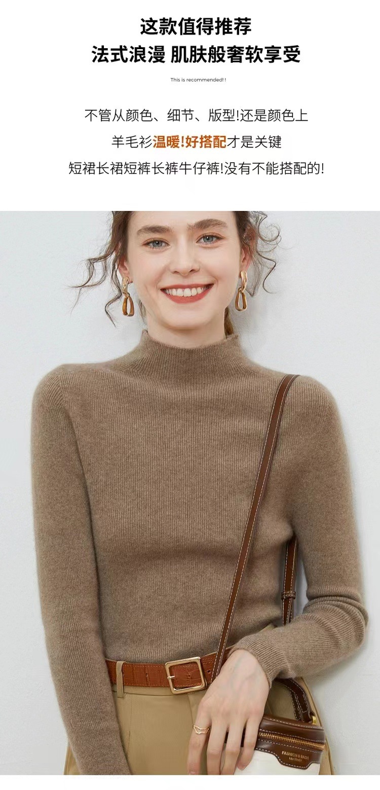 100%纯羊毛衫女半高领打底衫秋冬新款内搭紧身毛衣修身显瘦针织衫