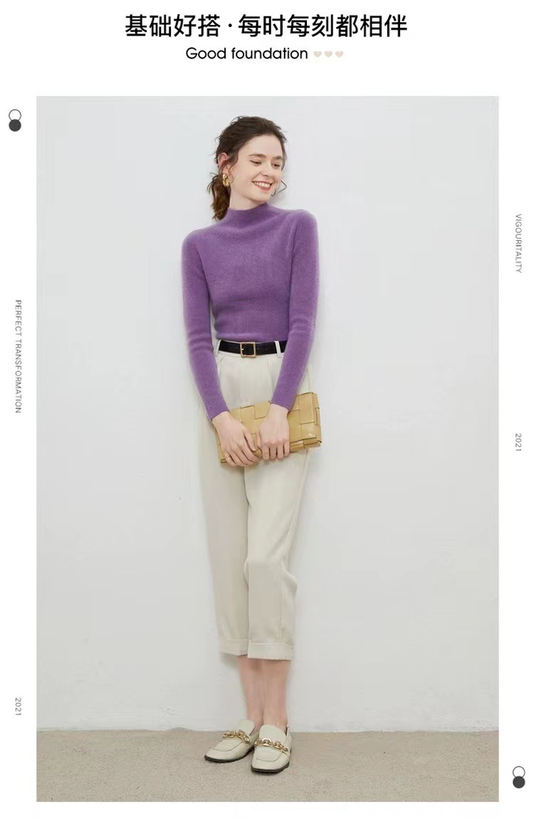 一線の成衣シームレス半高襟ウールセーター女性プルオーバーセーター