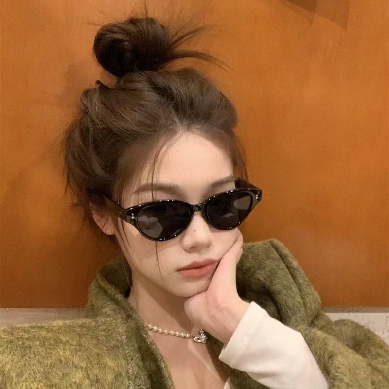 レトロ猫眼小顔ギャルサングラスレディース高級感インスタ定番黒日焼け止めuvカットサングラススクエア顔