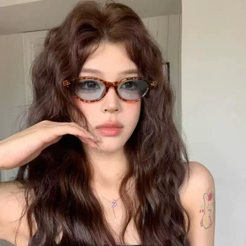 韩系インスタ风超軽量小型フレームサングラスレディース高级感防紫外线大きい颜见せ痩せトレンド偏光サングラス