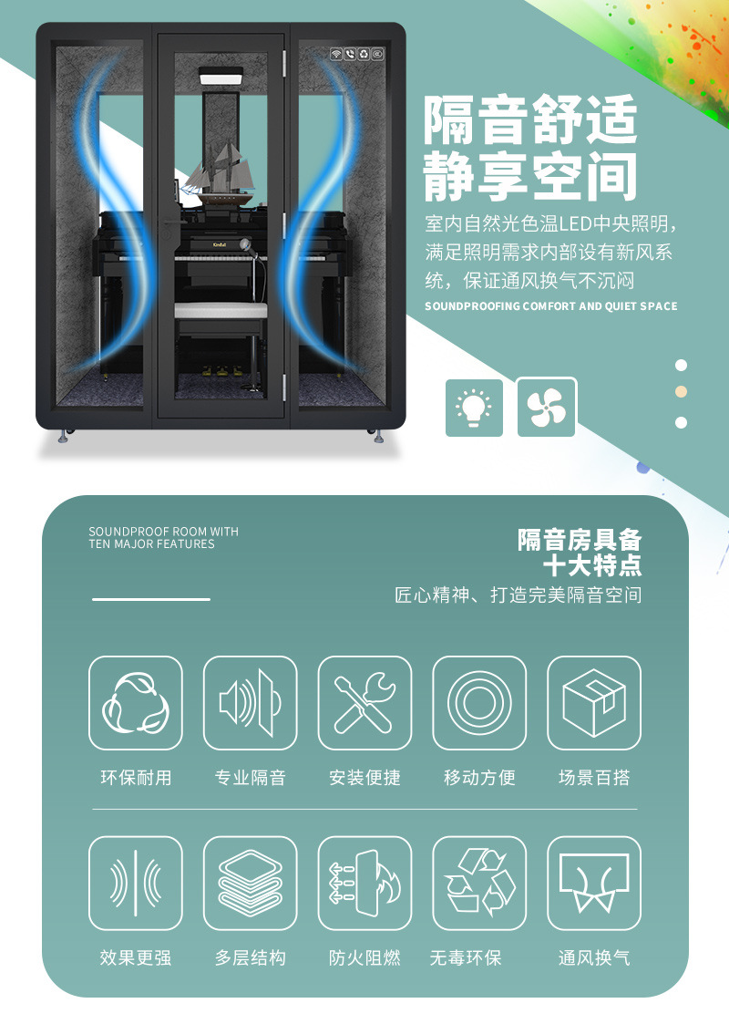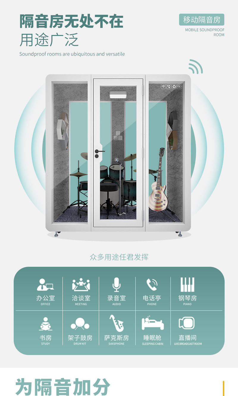 家庭用ktv防音室静音室室内移動式スタジオピアノドラム練習ピアノ直播間倉