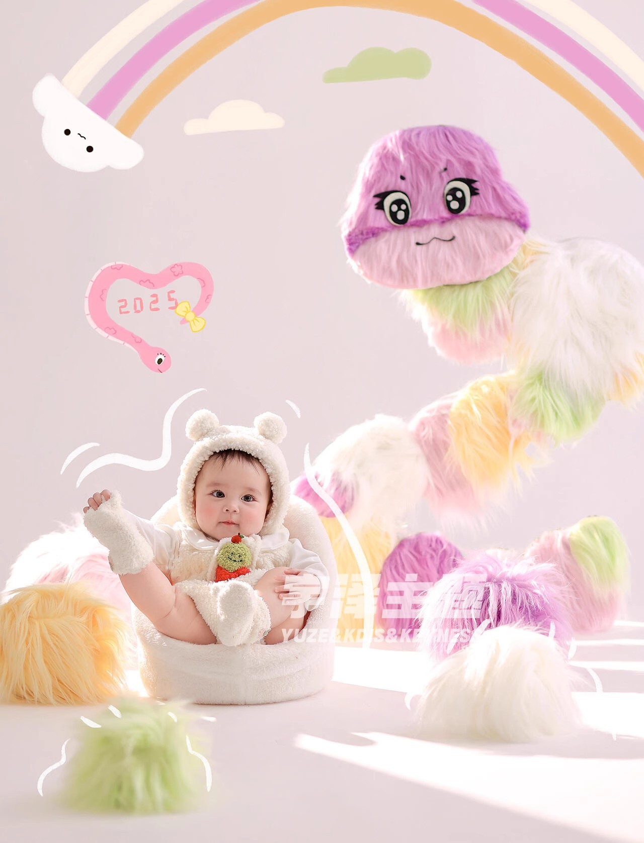 蛇年新生児赤ちゃん百天照服装道具漫画テーマセット満月撮影道具新歳