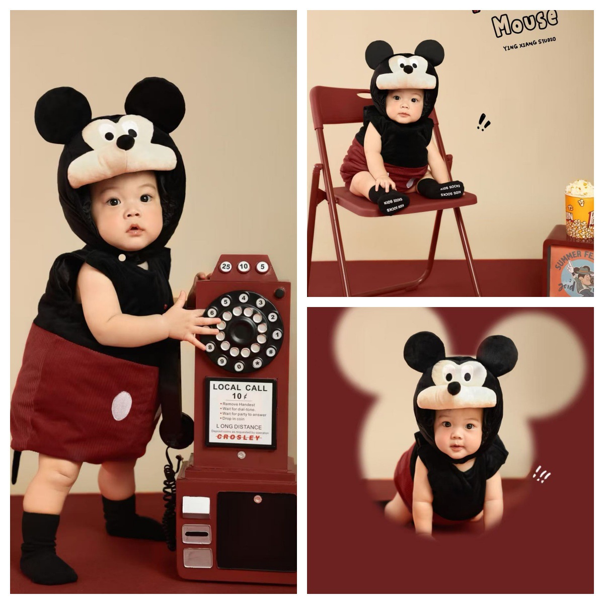 百天照撮影道具服ミッキーのテーマ赤ちゃん百日照百歳照100日撮影服