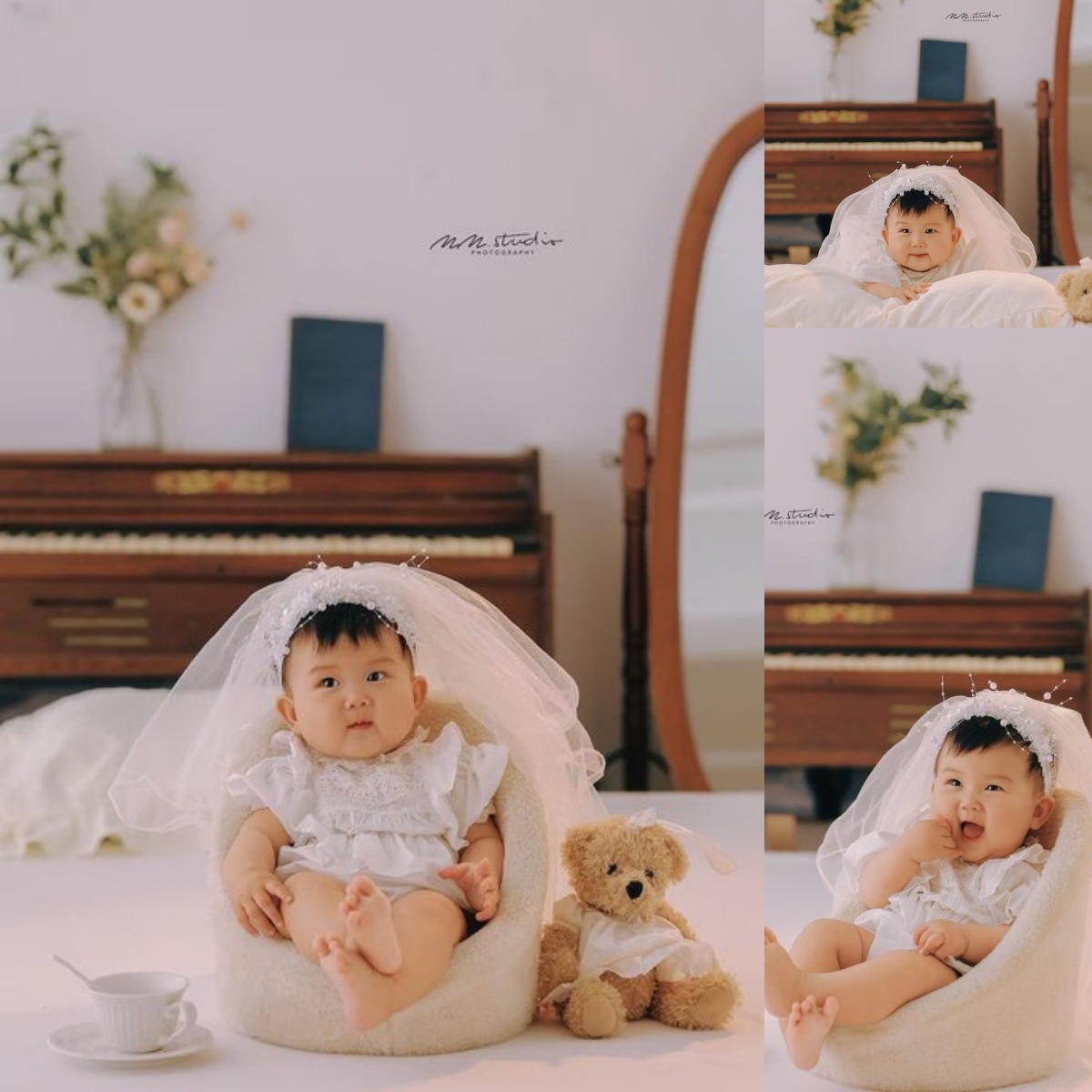 フォトスタジオレトロ子供のウェディングドレス赤ちゃん生後100日写真衣装小道具レース赤ちゃんの写真のテーマプリンセス