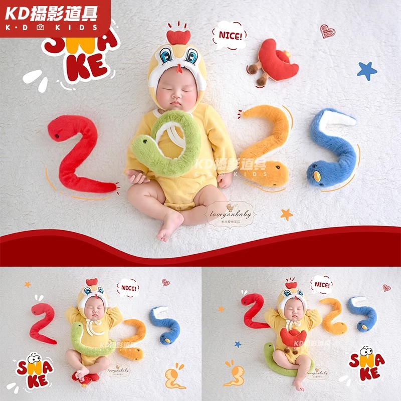 新年の蛇の年の百日間の赤ちゃんの撮影の服装は蛇のテーマの子供の影楼の写真を食べます。