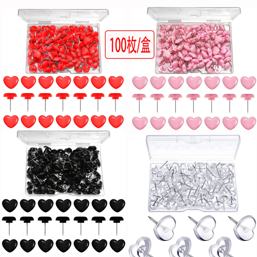 亚马逊100枚塑料爱心图钉创意办公文具DIY心形按钉工字钉地图钉