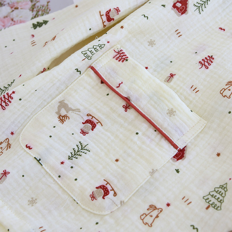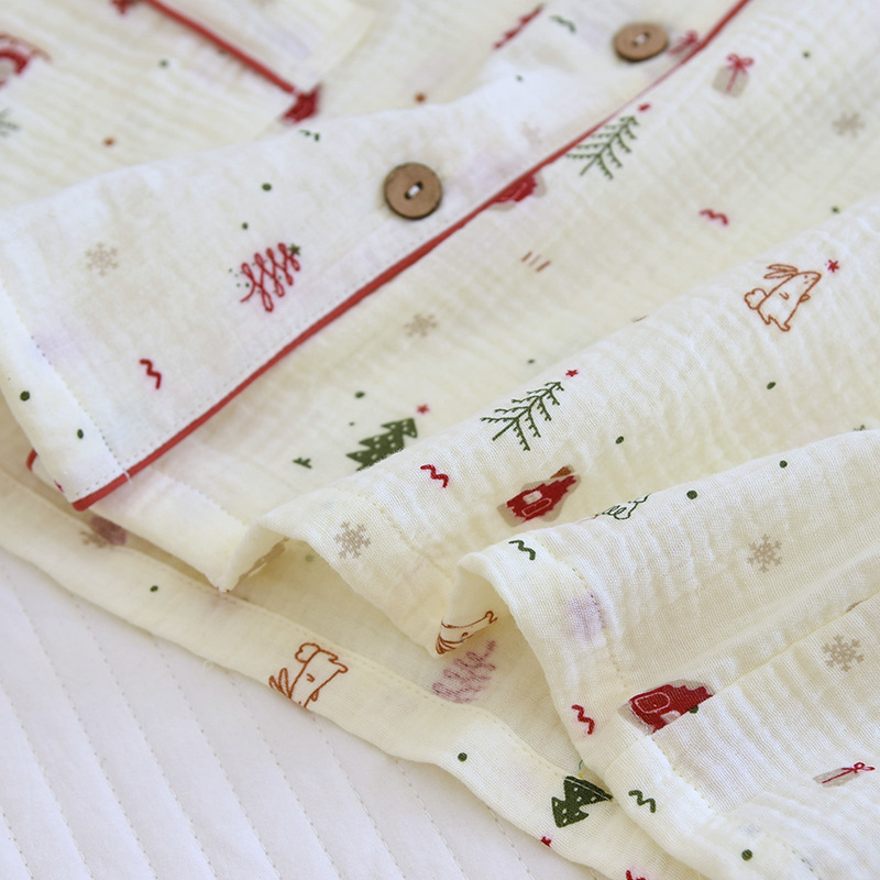 国の風の色は純綿の寝衣の女性の二重ガーゼの復古のジャカードの漢服の着物の家庭の浴衣の春と秋はゆったりしています。