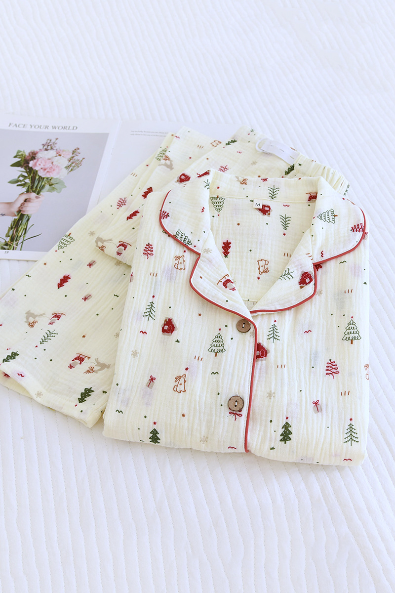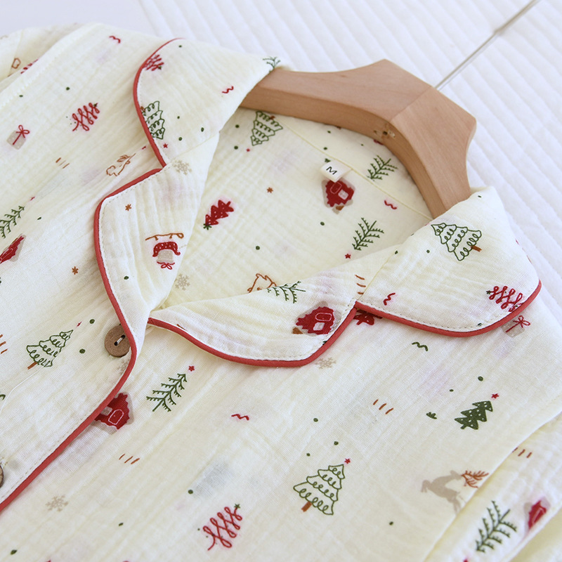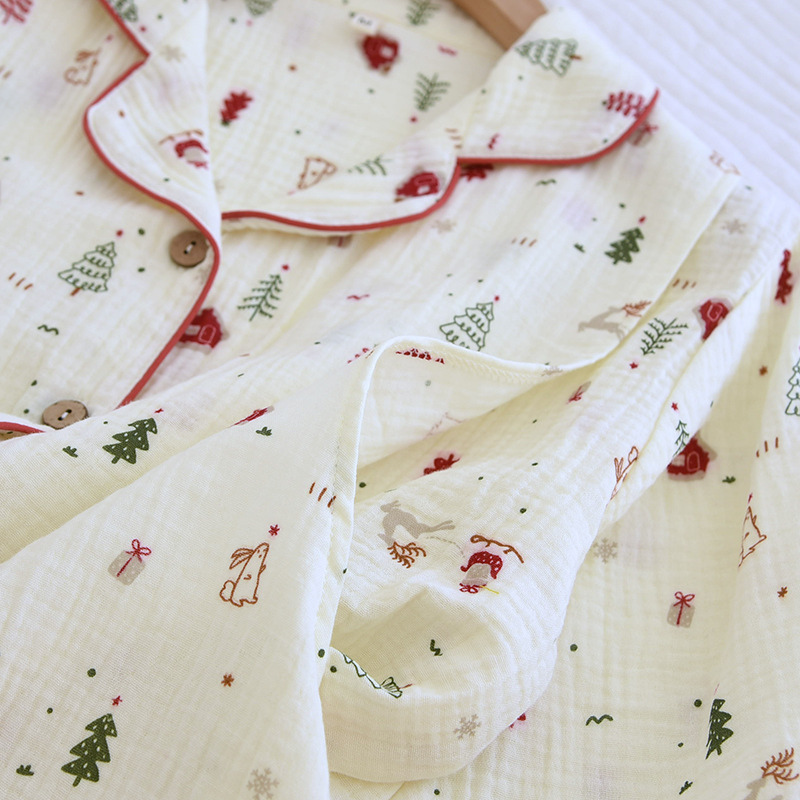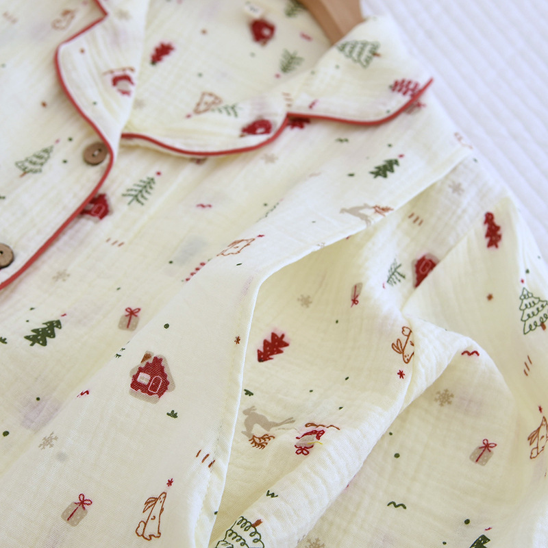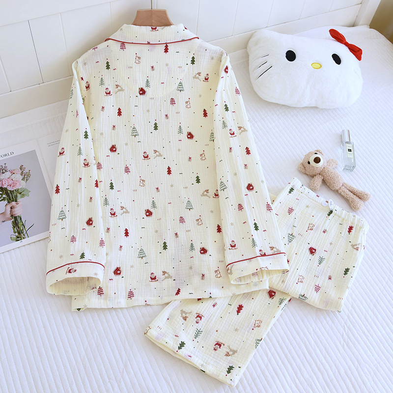 クレープ綿ホームウェア春と秋の新型純綿ホームウェアセット長袖長ズボンパジャマ