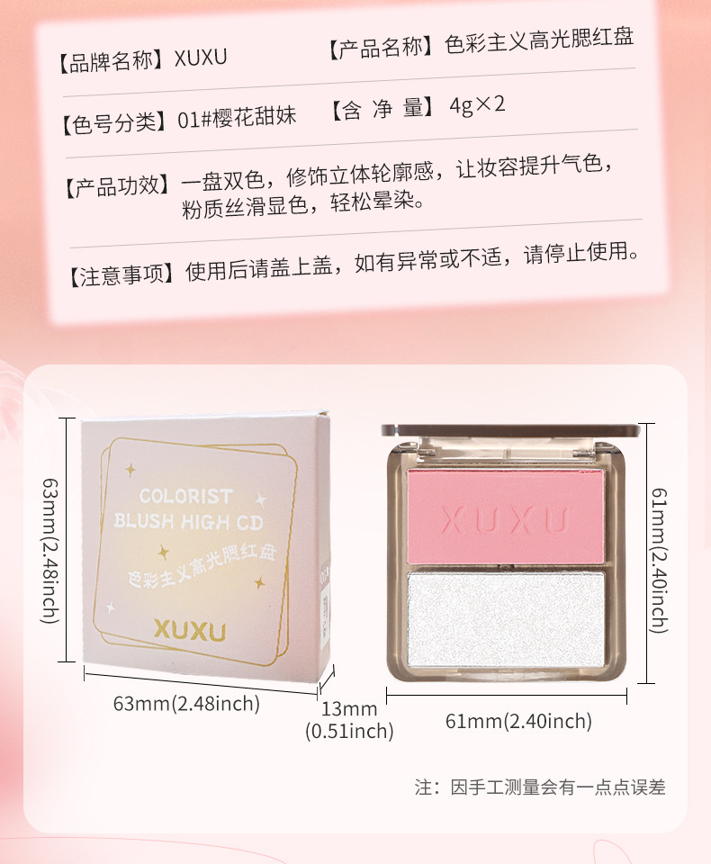 XUXU色彩主義のハイライトの頬紅の皿のつや消しのハイライトの顔は頬紅の皿の1皿を明るくして多くの女性の越境を使います。