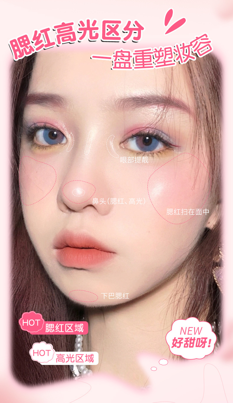 茗希芝の四色の修容盤の頬紅の頬紅の皿の1皿は多く紅の頬紅を使って盤の高い光ディスクの越境を明るくします。
