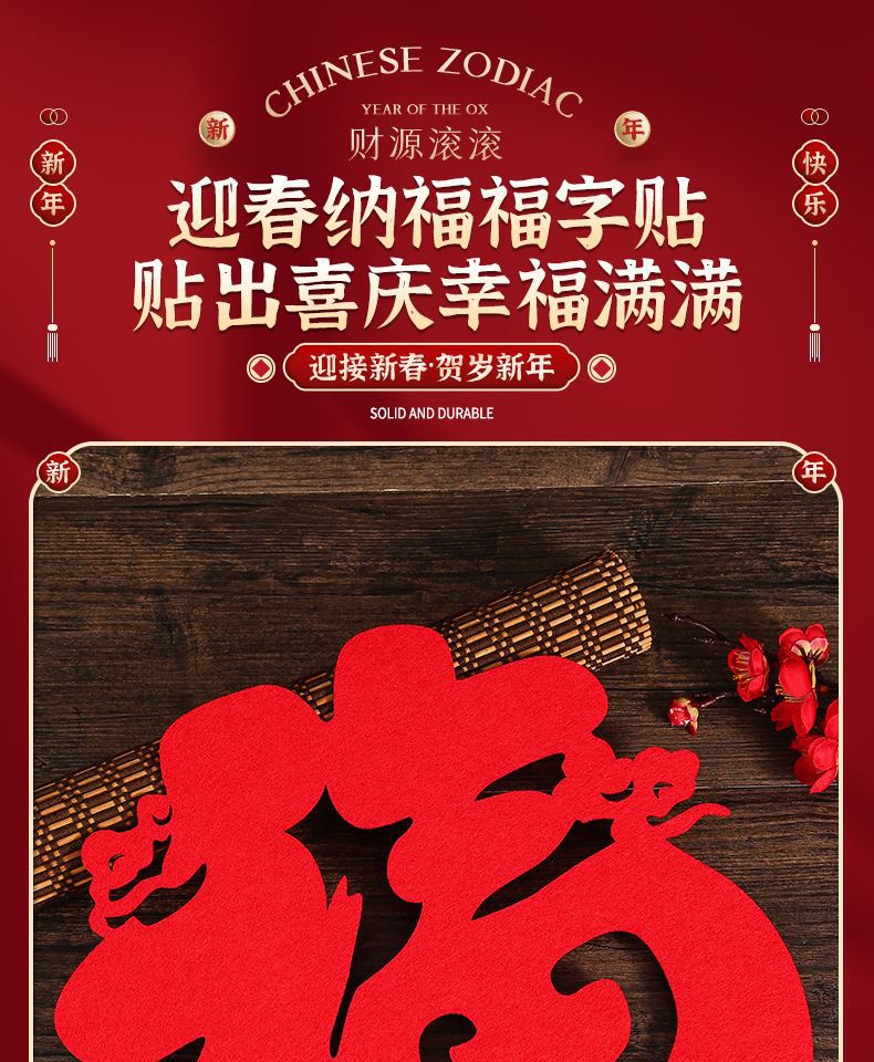 馬年福文字新年春節立体壁飾り新築祝いドアステッカー大福不織布背景壁飾り窓飾り