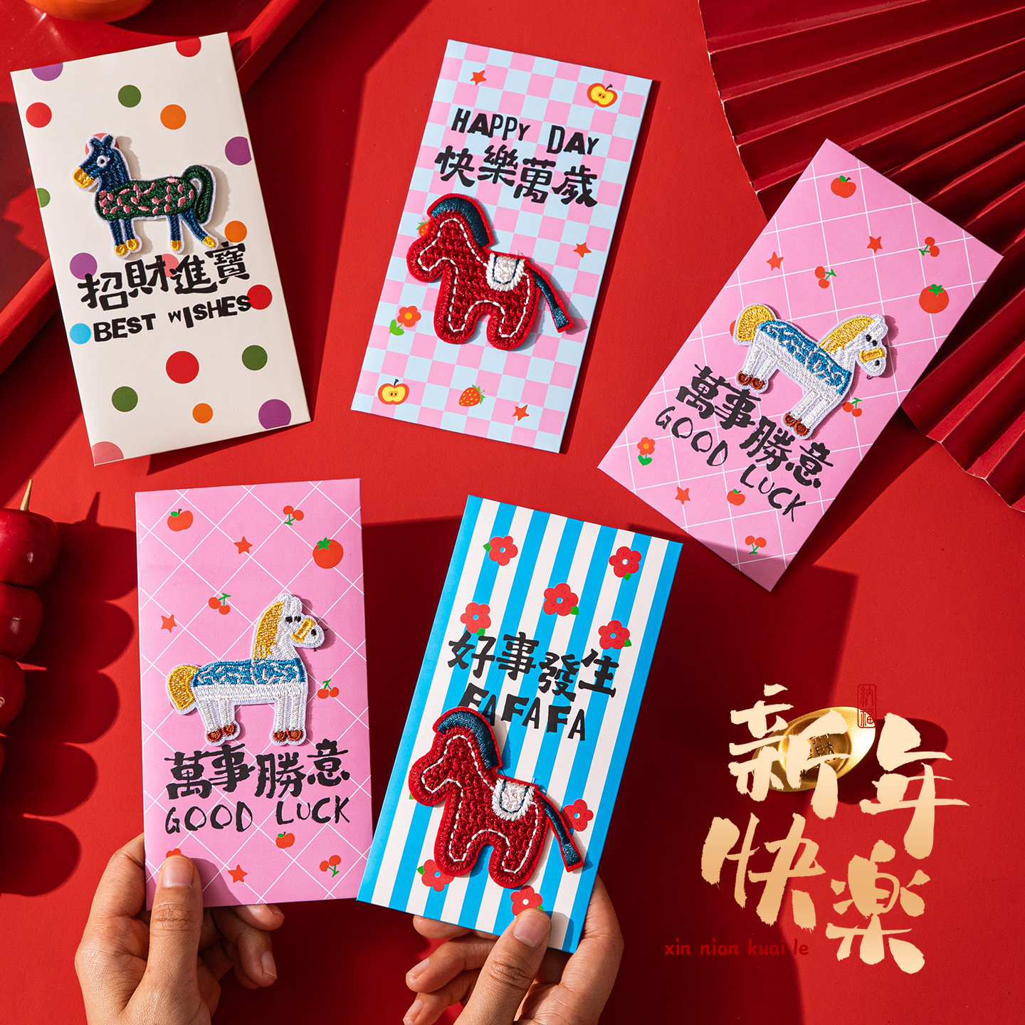 2026新年刺绣平面红包马年春节卡通可爱压岁钱包利是封装饰用品