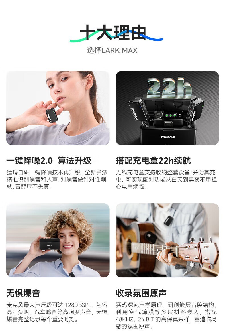 猛馬MOMALark Max一拉二無線クリップマイクマンモス一眼レフ携帯電話ライブvlogビデオ