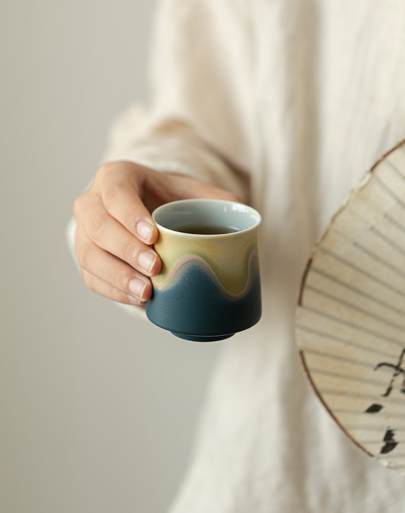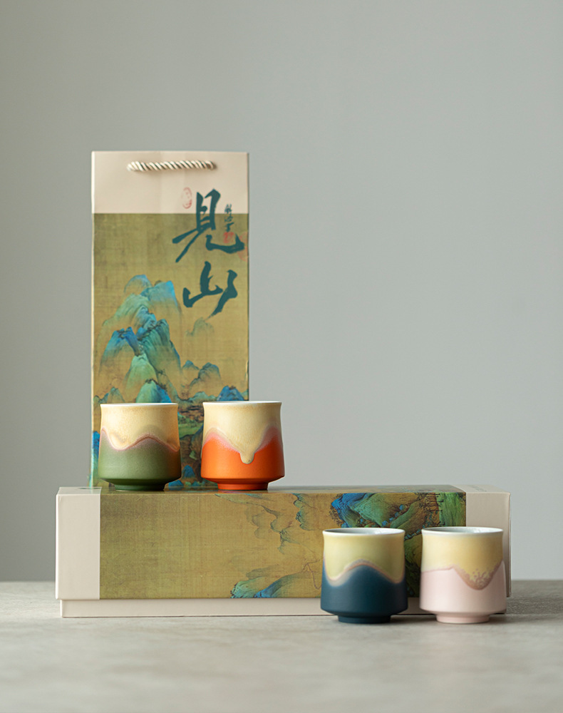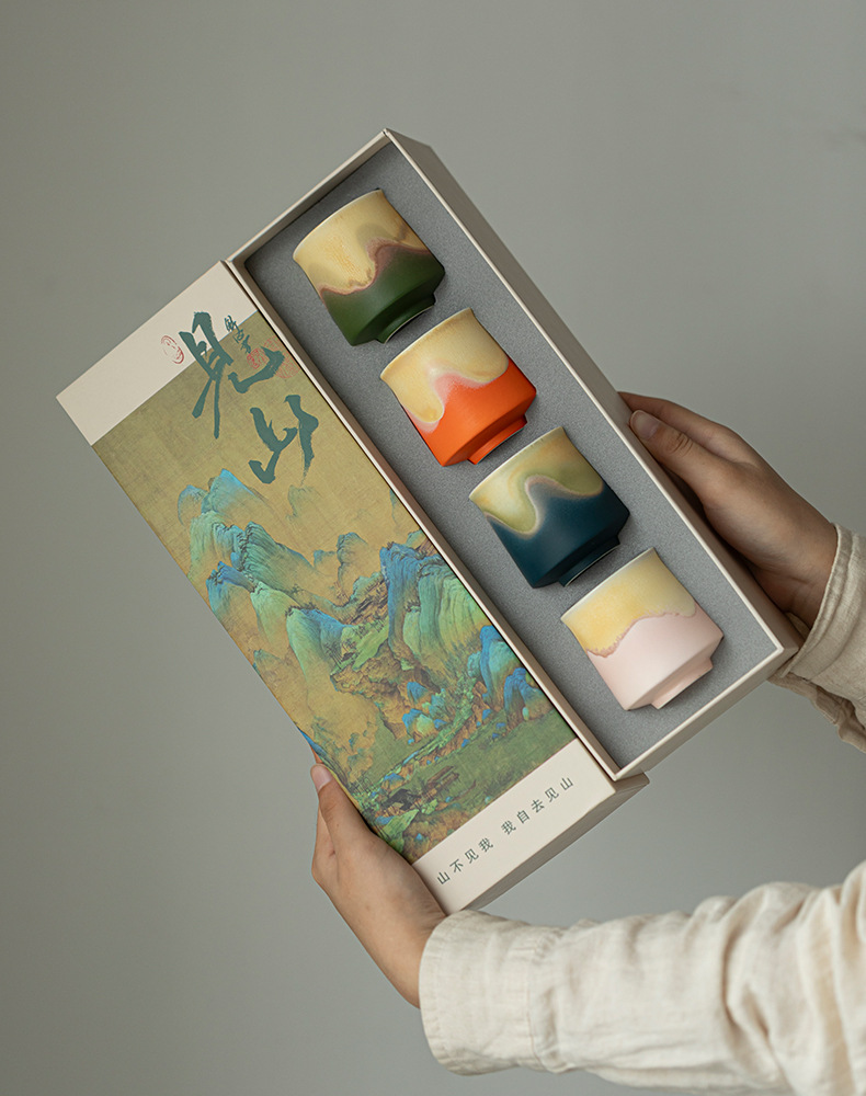 千里江山国潮文创茶杯礼盒装远山手绘主人杯陶瓷品茗单杯伴手礼品