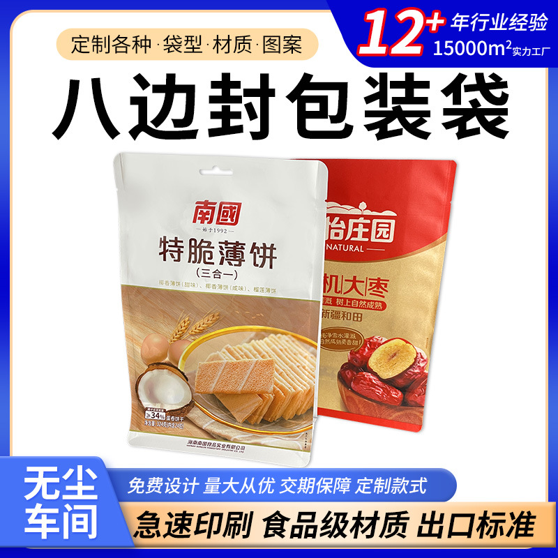 包装袋印刷食品包装袋八边封镀铝箔自立自封袋彩印复合包装袋