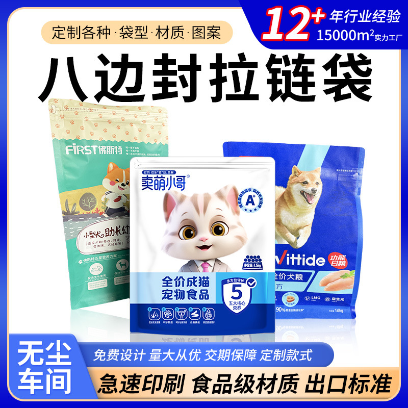 ペット食品包装袋印刷食品包装袋アルミ箔メッキ八辺封袋カラー印刷デザイン包装袋