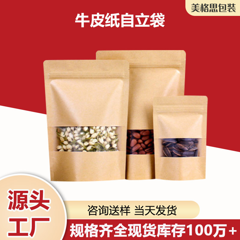 つや消し窓開けクラフト紙自立自封袋密封防湿防水茶葉五穀雑穀食品包装袋