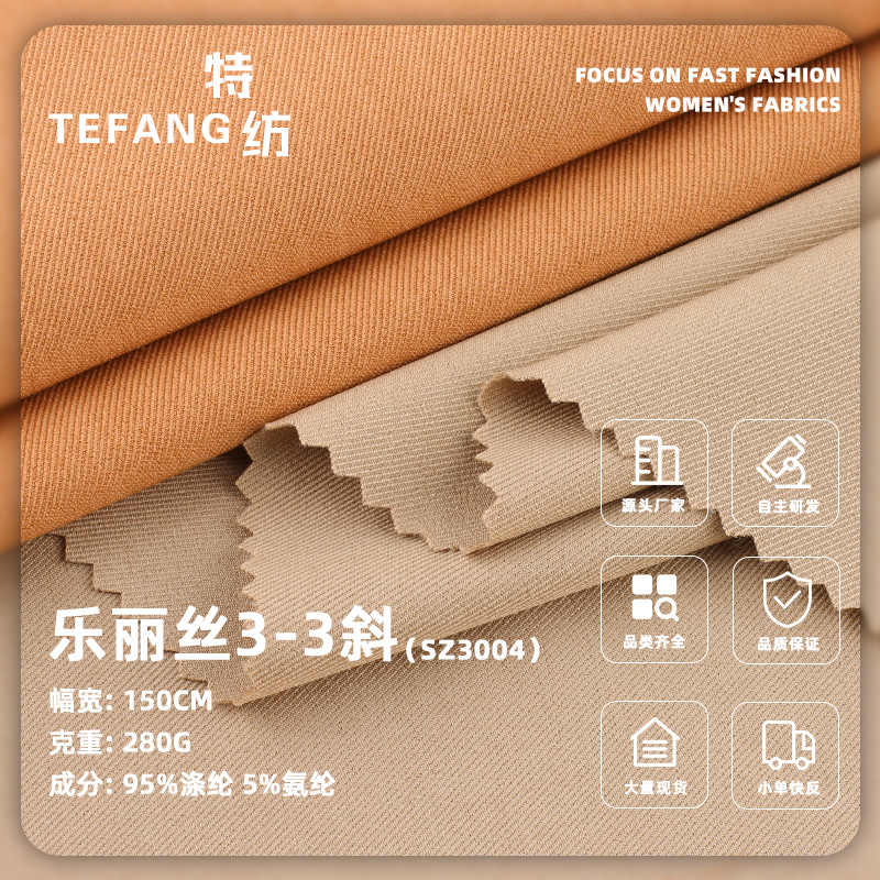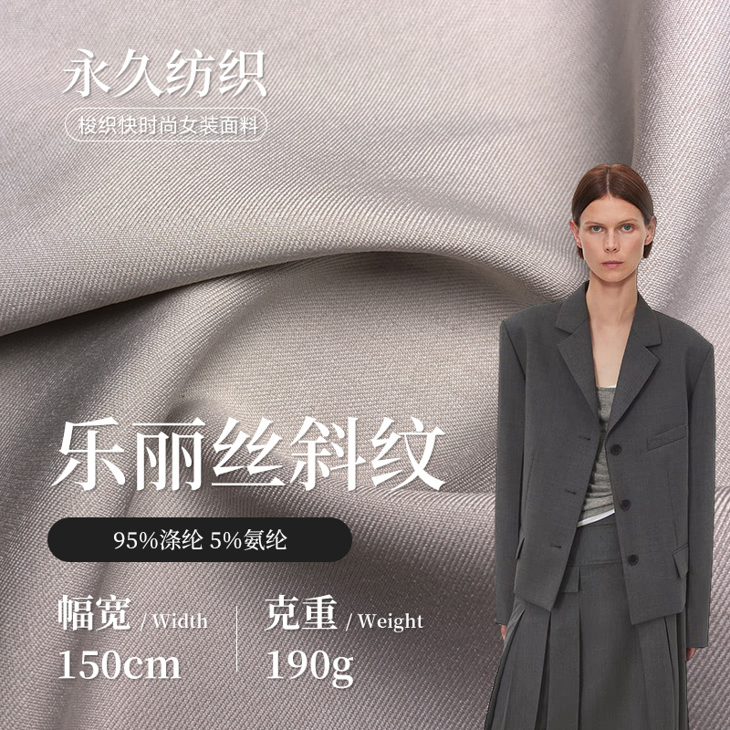 190g乐丽丝斜纹涤氨面料 斜纹弹力梭织布 春夏时尚风衣西装裤布料