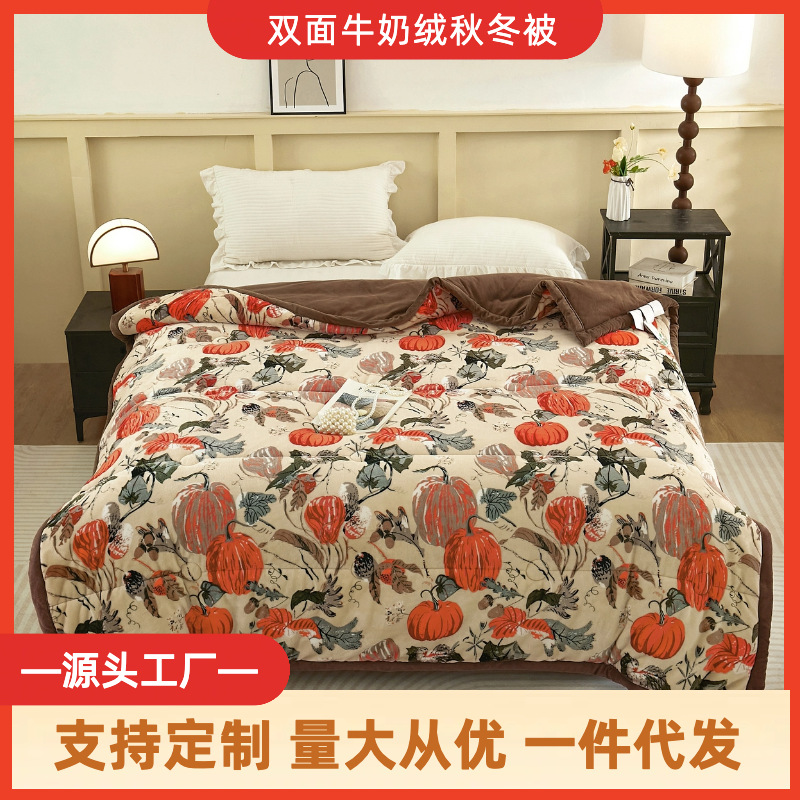跨境加工石墨烯南瓜被子加厚牛奶绒冬被件代发单人双人被芯批发