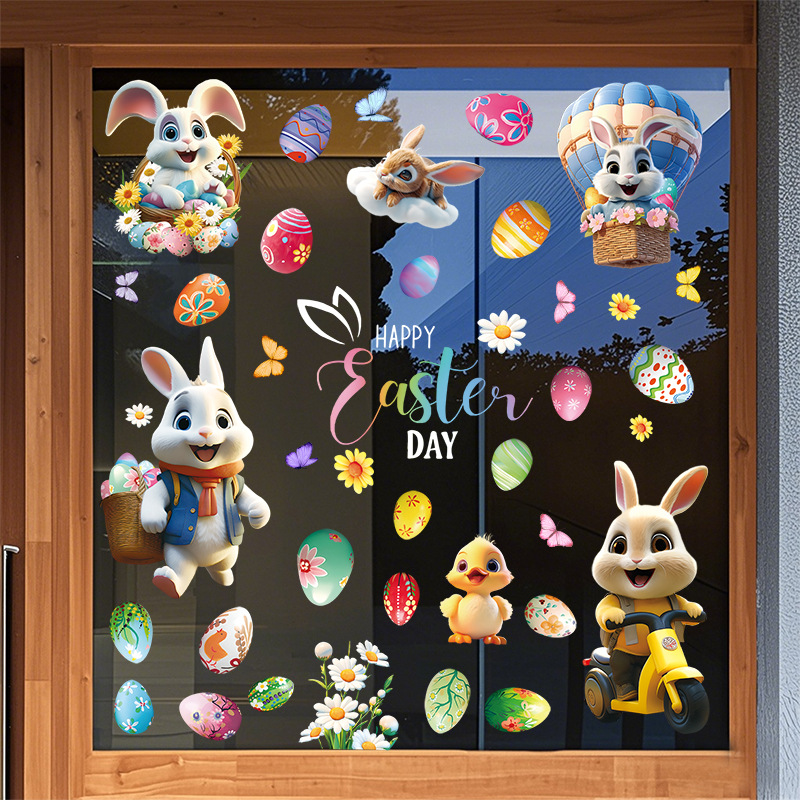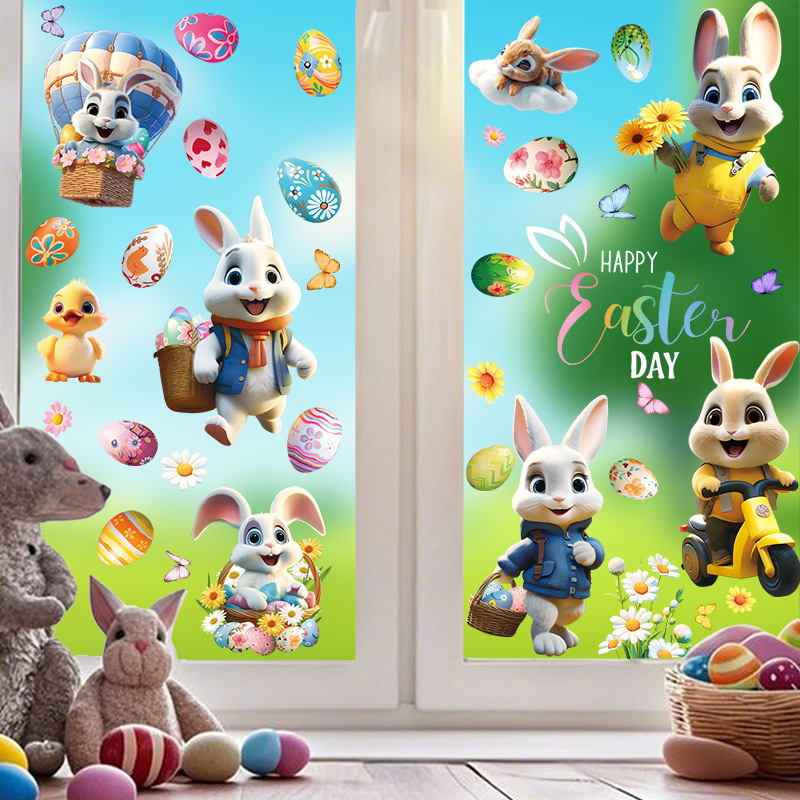 川豪の新商品の越境イースターのオートバイのウサギのかわいいウサギの卵の店の祝日の装飾の壁は静電気のステッカーを貼ります。