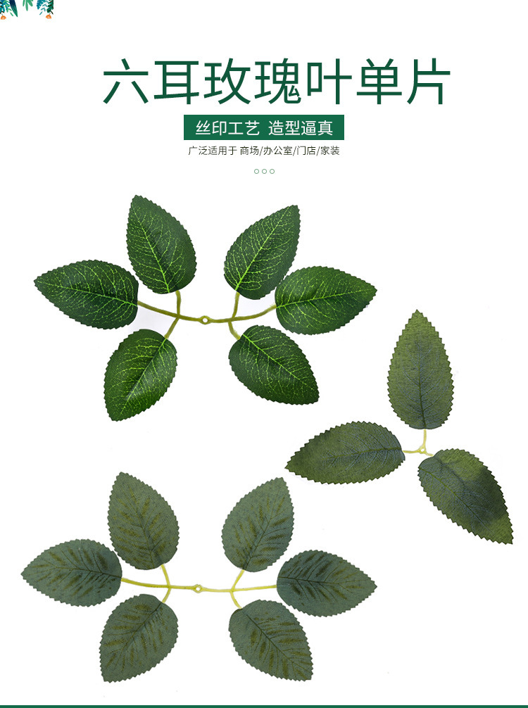 工場卸売りシミュレーションシルク印刷六耳薔薇葉シミュレーション緑植葉手作りユーカリ葉生け花用現物