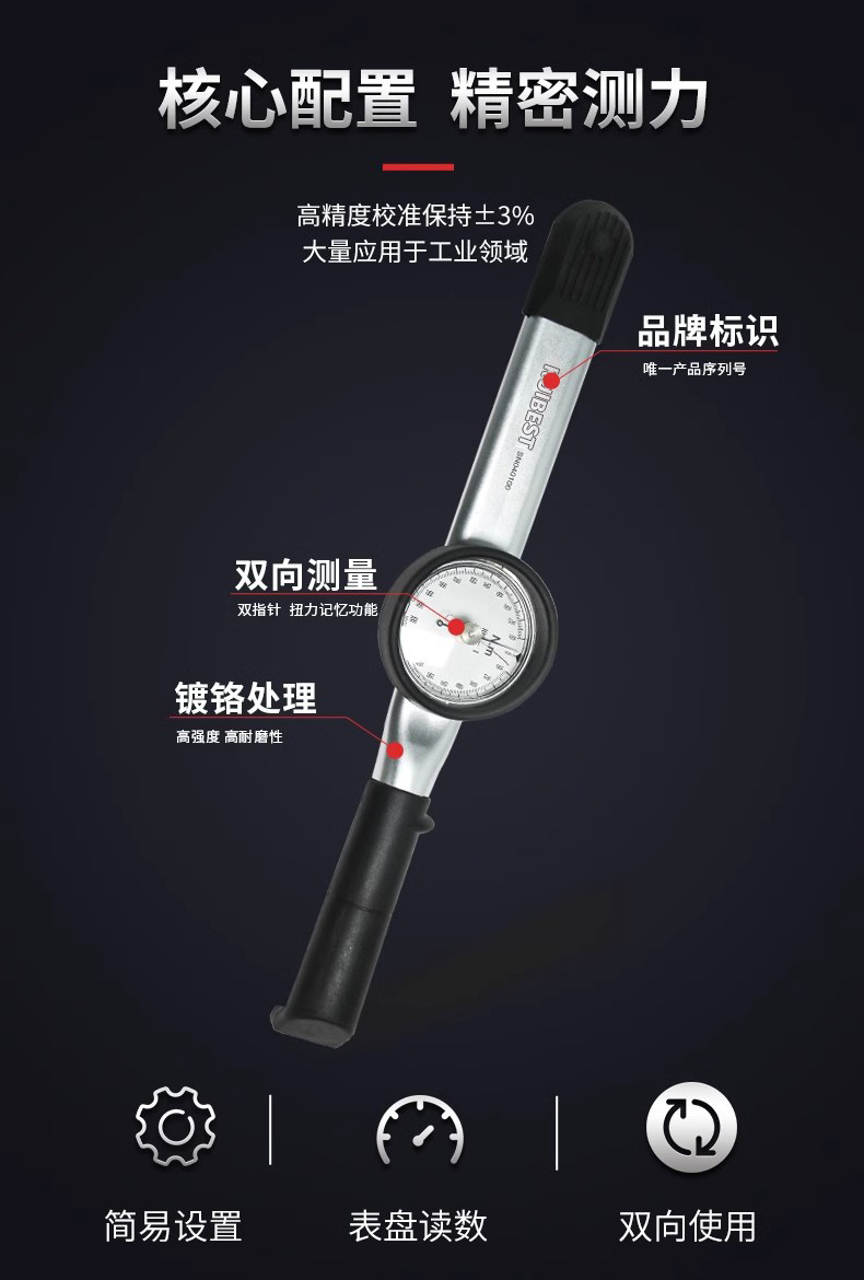 RUIBEST睿測定文字盤式トルクレンチのプリセット調整可能な指針キロトルクテスト測定角度