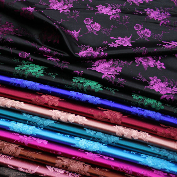 2024新型模造シルクジャカード生地牡丹花暗紋弾力色丁布サテンチャイナドレス漢服生地