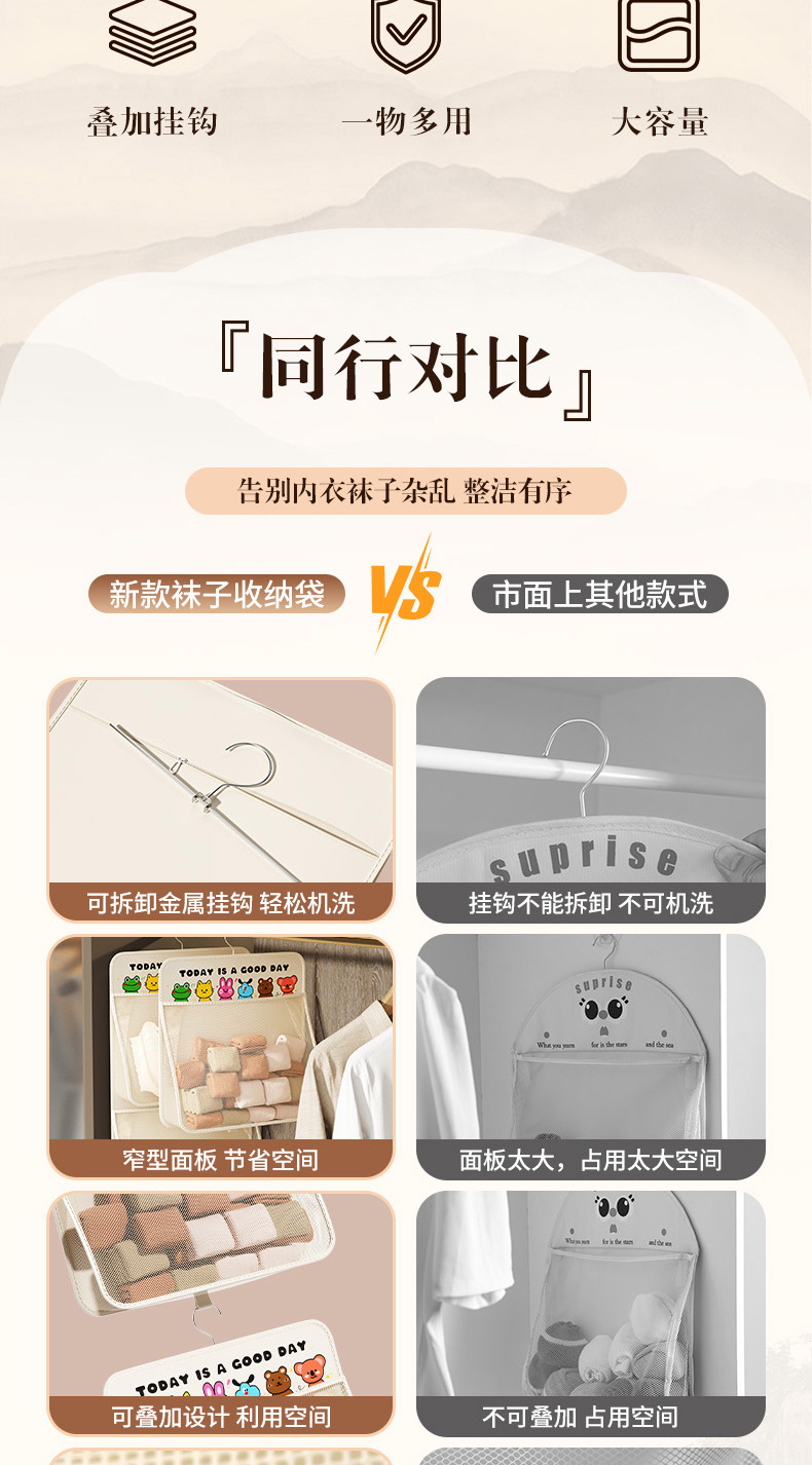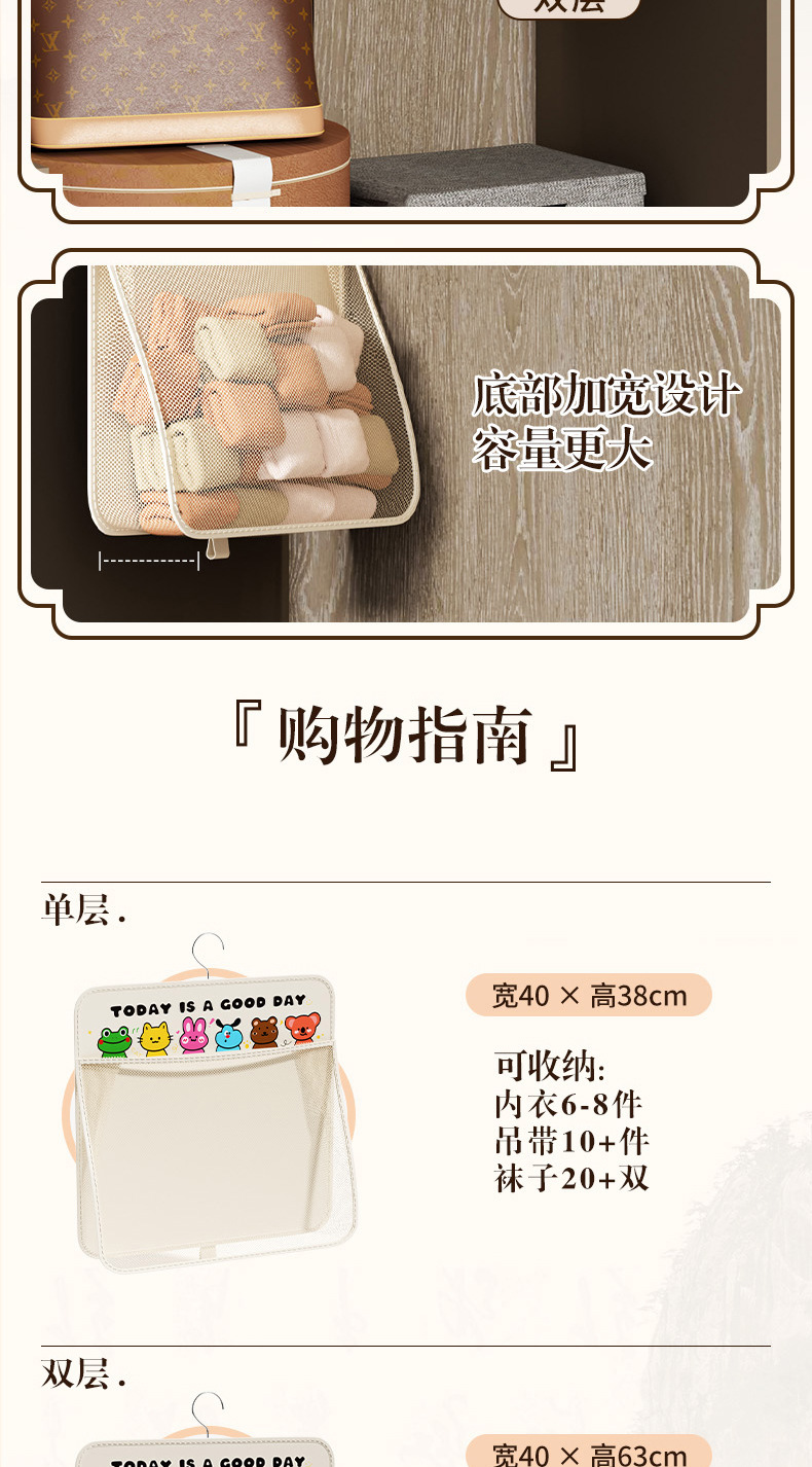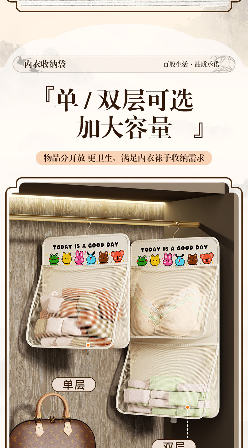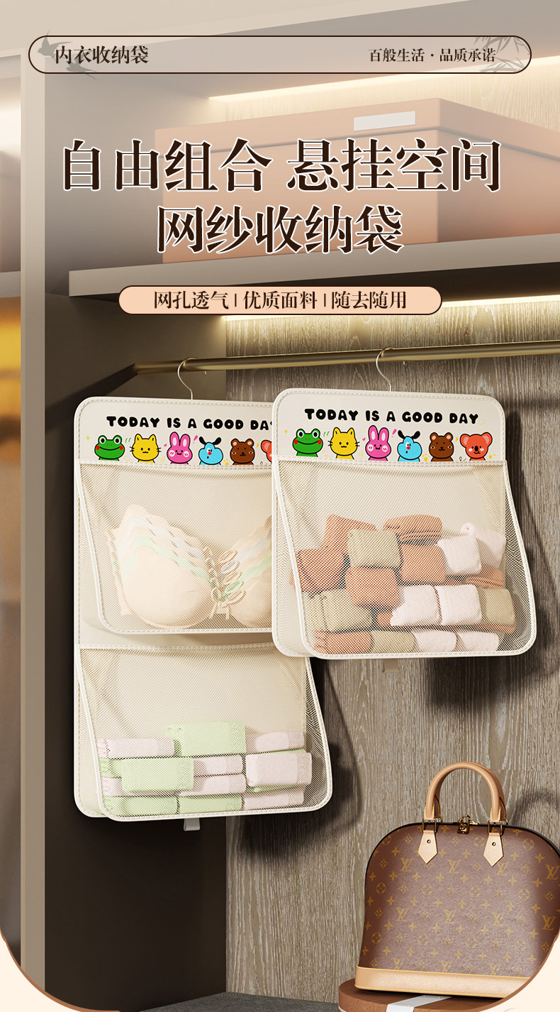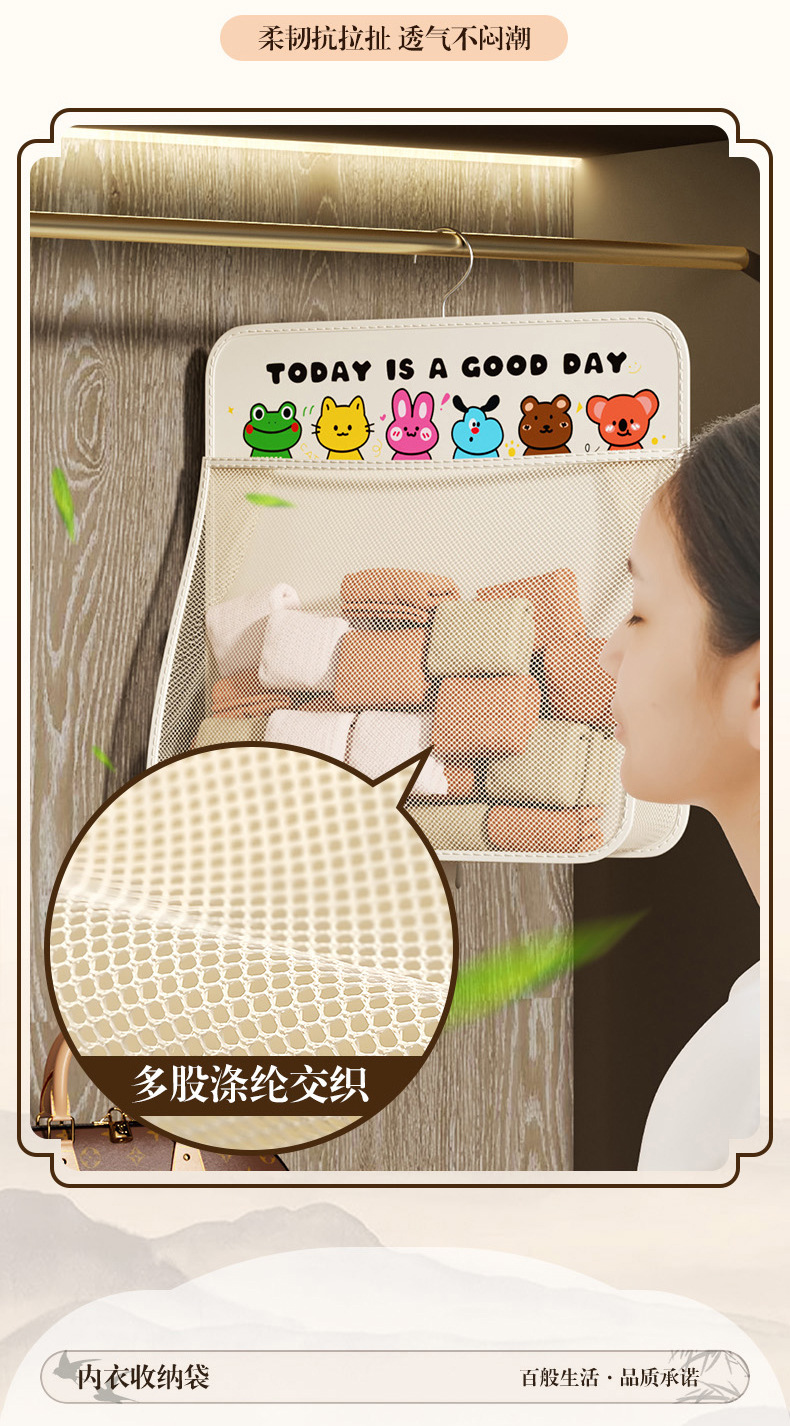 卡通单双层内衣挂袋加厚斜纹高颜值挂袋防泼水悬挂式内衣裤置物袋