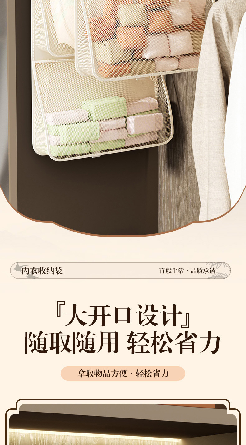 下着の両面収納袋のタンスの靴下は袋の扉の後のごみを掛けて整理して神器の吊り式のネットのポケットを収納します。
