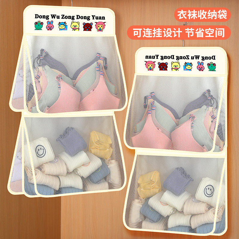 靴下収納袋両面下着たんす吊り式ネットポケット壁掛け家庭用寮のベッドの上の壁に袋をかける