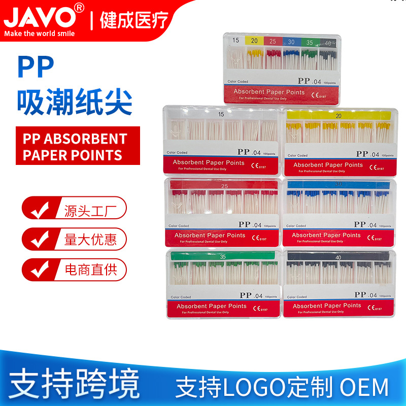 国境を越えた人気の歯科材料根管吸収性PP紙チップ020406テーパーF1F2F3吸湿紙チップ
