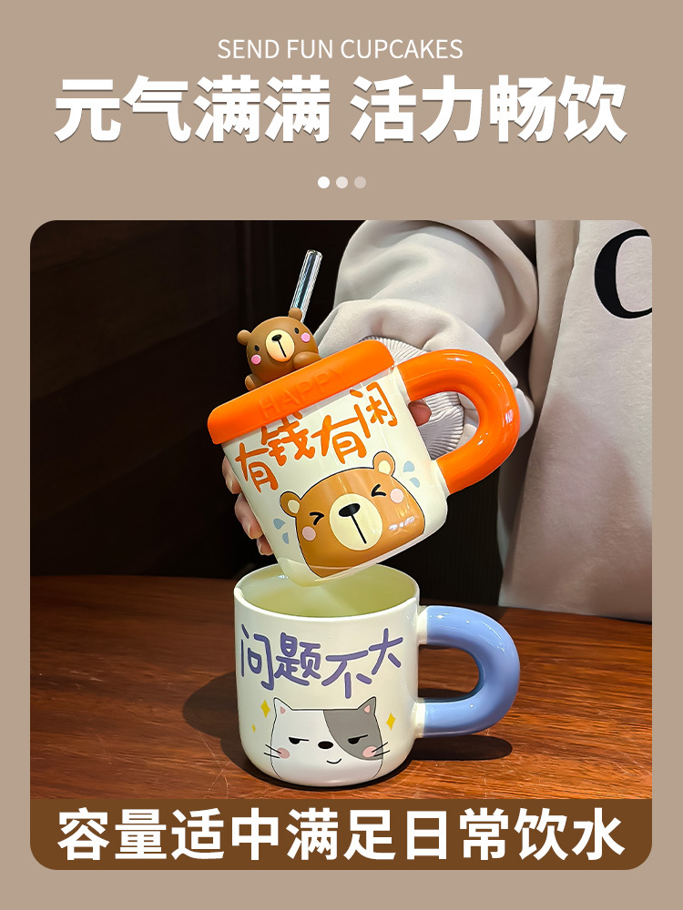 問題ないニャー(カップ+シリコン蓋+ストロー),リッチベア(カップ+シリコン蓋+ストロー),不安クマ(カップ+シリコン蓋+ストロー),ハッピーラビット(カップ+シリコン蓋+ストロー)