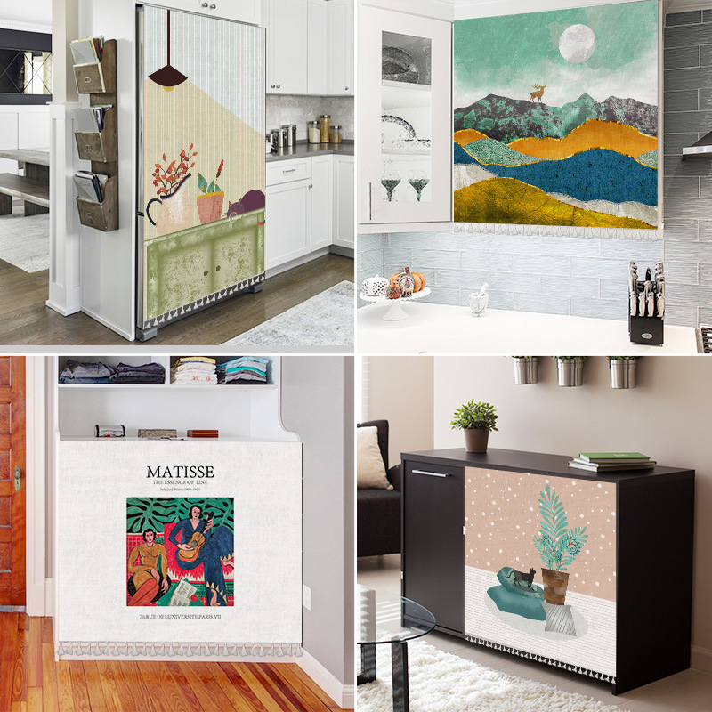 戸棚はカーテンのマジックを隠して戸棚を貼って醜い布のカーテンを隠します。