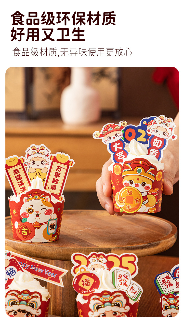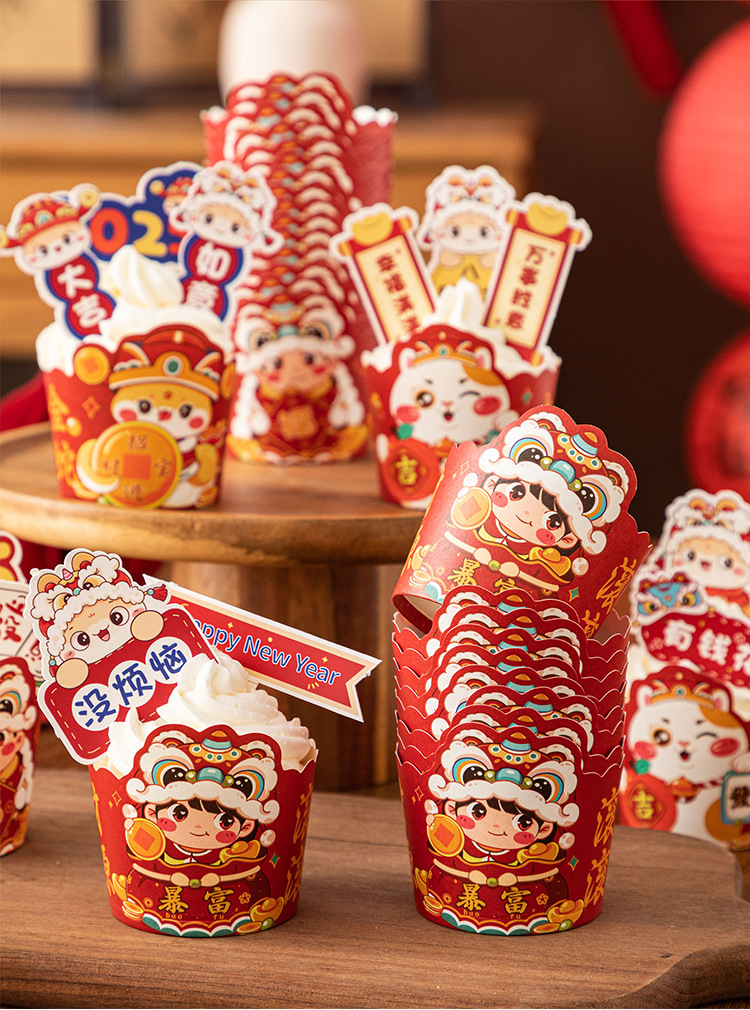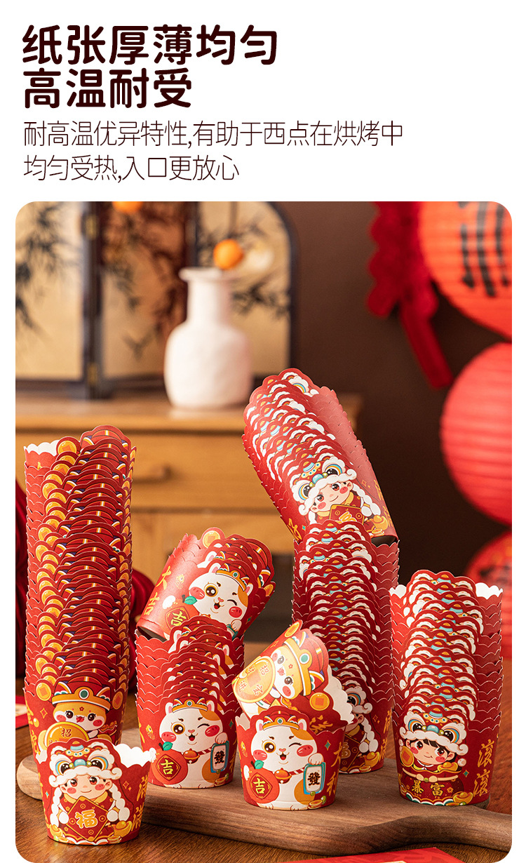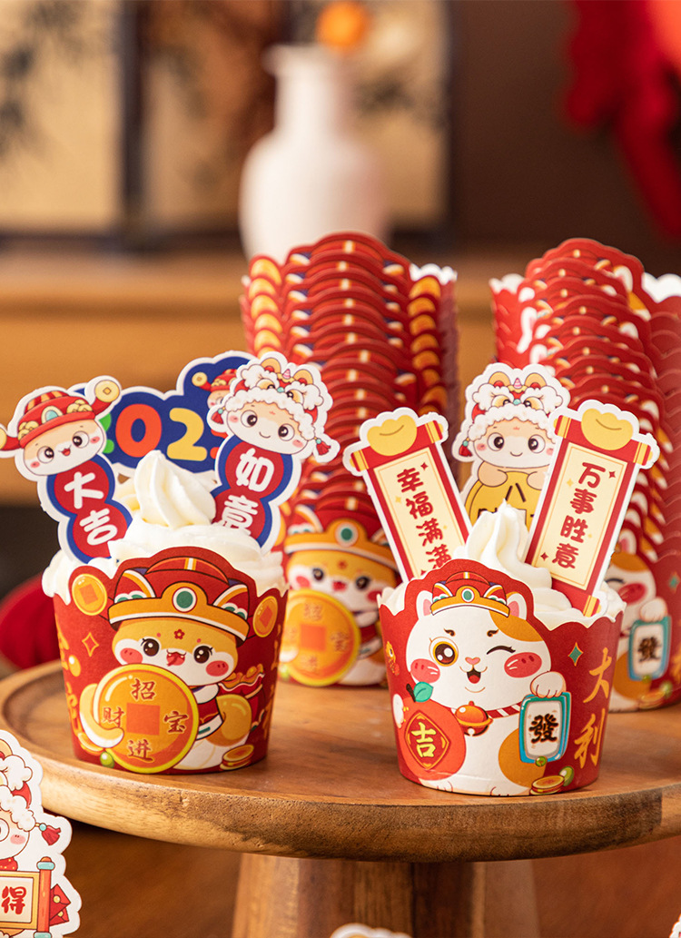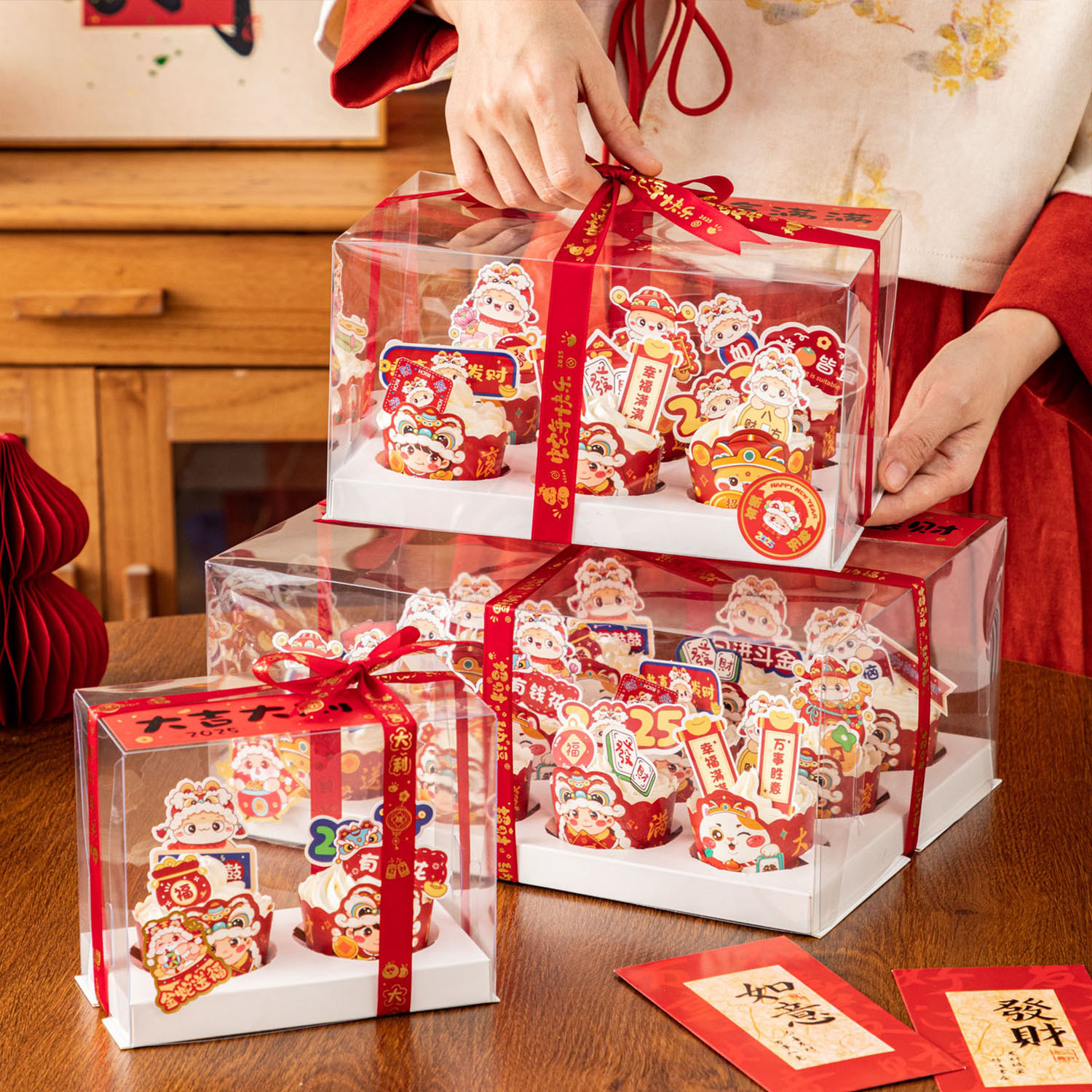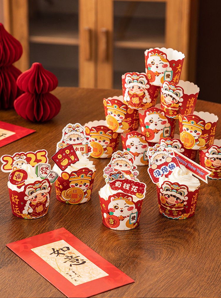 2026年新年カップケーキカップ 蛇年元旦限定カップ 春節包装箱カップ 厚手耐熱マフィンカップ