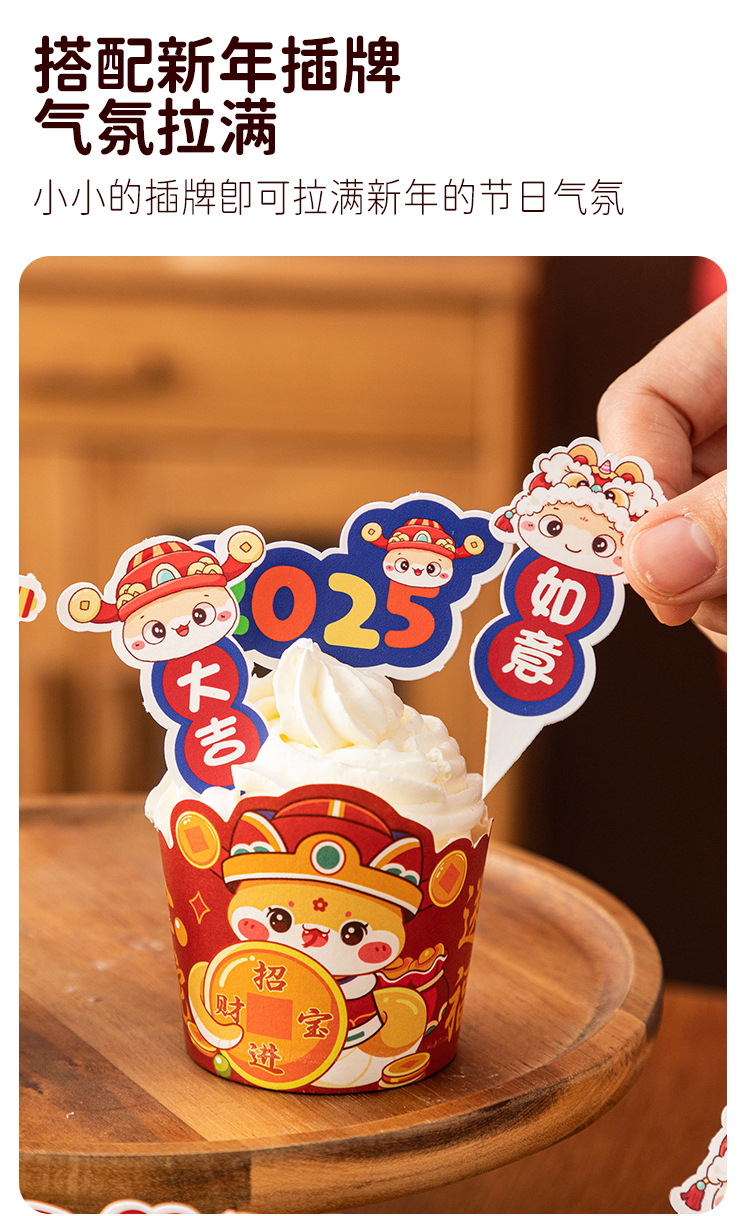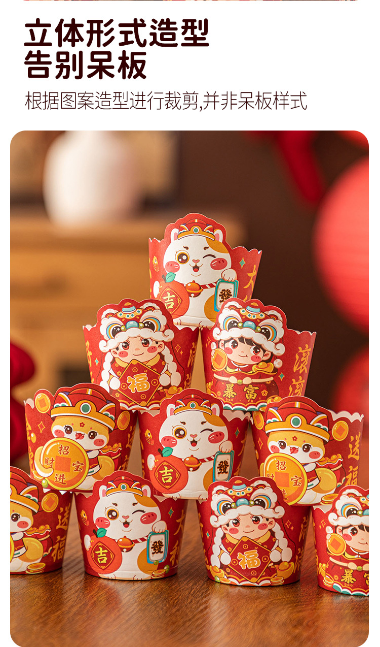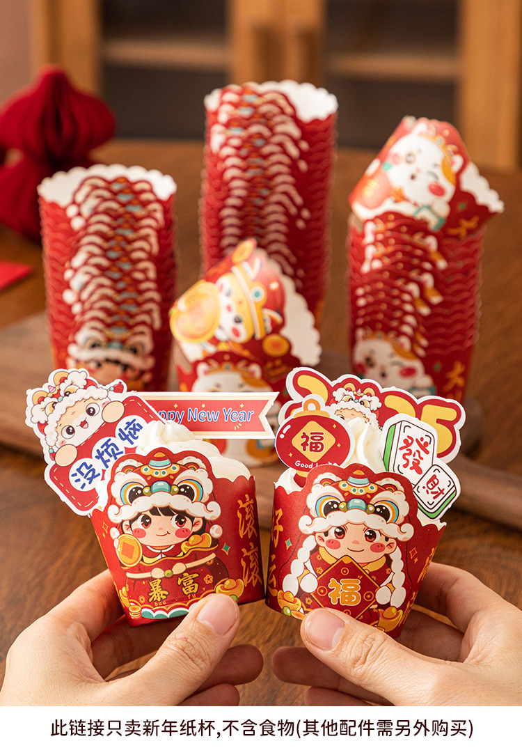 2025年新年紙コップケーキカップ蛇年元日専用カップ旧正月包装箱コップは耐熱馬芬杯を厚くする