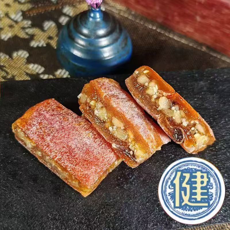広西のカキ餅はクルミの仁を挟んで独立して柿の餅を包装します。